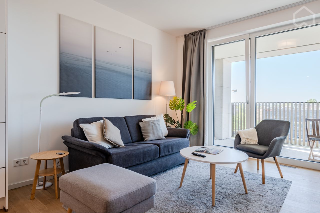 Premium modern two-room Apartment in top location with beautiful views of the River Spree, the historic Berlin Wall and the Oberbaum Bridge