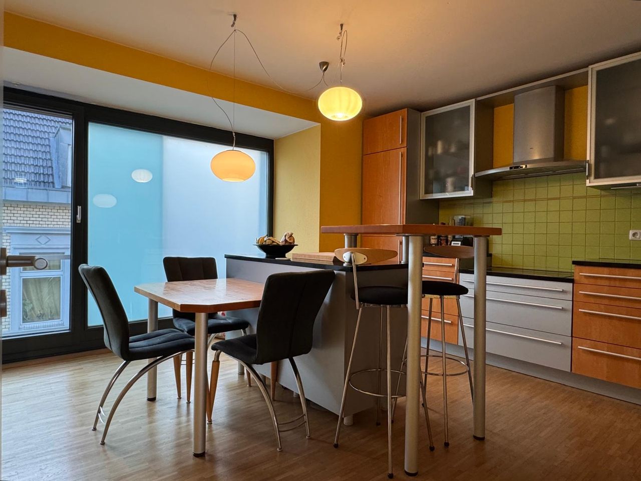 This beautifully bright maisonette flat is centrally located in a quiet side street above the rooftops of Cologne in Alt-Ehrenfeld. Venloer Strasse with many shopping and nightlife options is within walking distance. The flat has excellent public transport connections: Subways 3,4,5 and Ehrenfeld station are only a few metres away on foot, the old town, the main railway station and the trade fair grounds are thus only a few minutes' drive away. The A57 and A3 motorways can be reached by car in j...