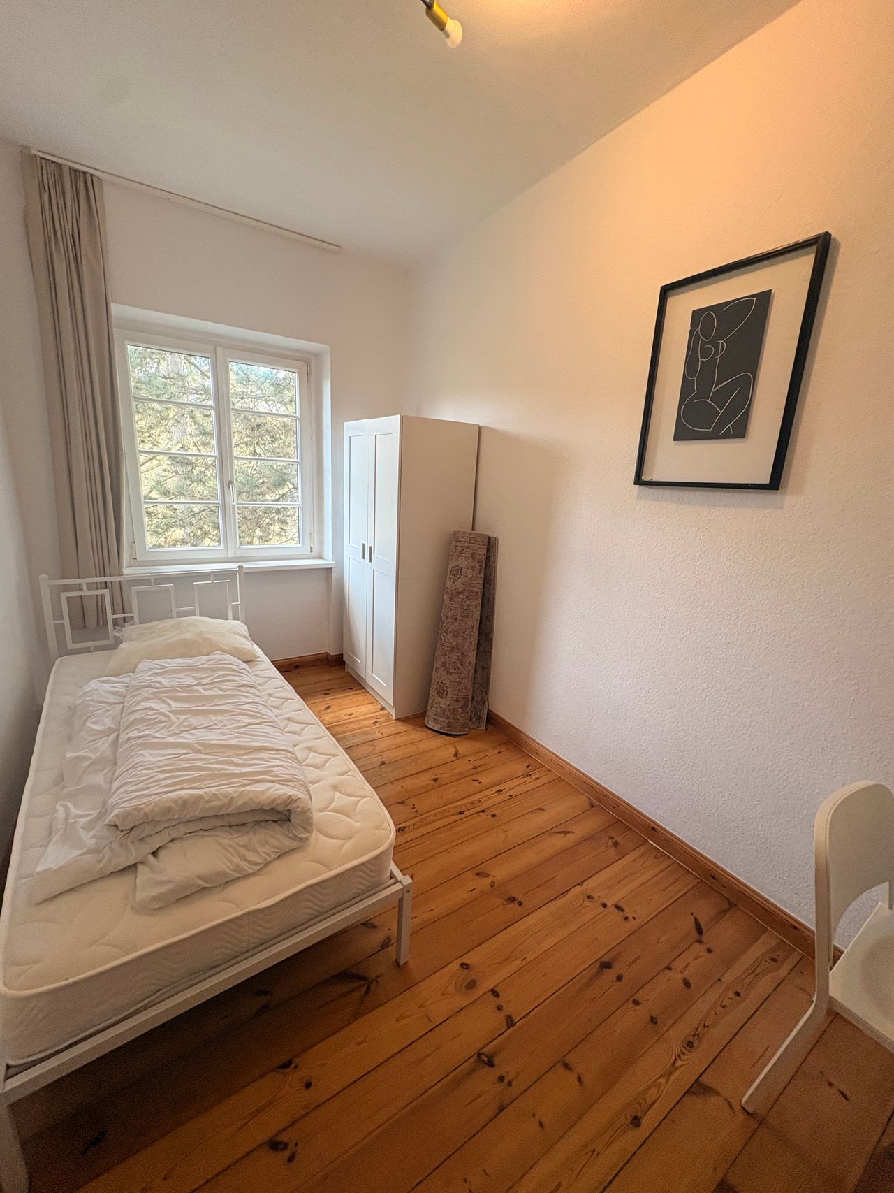 One furnished room (9. m²) is available immediately in a newly renovated 3-person flat share with a sunroom, located on Laehr’scher Jagdweg near FU Berlin. The other two rooms are already occupied and rented by two men; both are working professionals. Location: • 4 min to buses 258 & X10 • 8 min to Zehlendorf S-Bahn • Rewe & Aldi nearby Amenities: • Fully furnished • Heating, electricity, internet included • Shared kitchen, washing machine, fridge