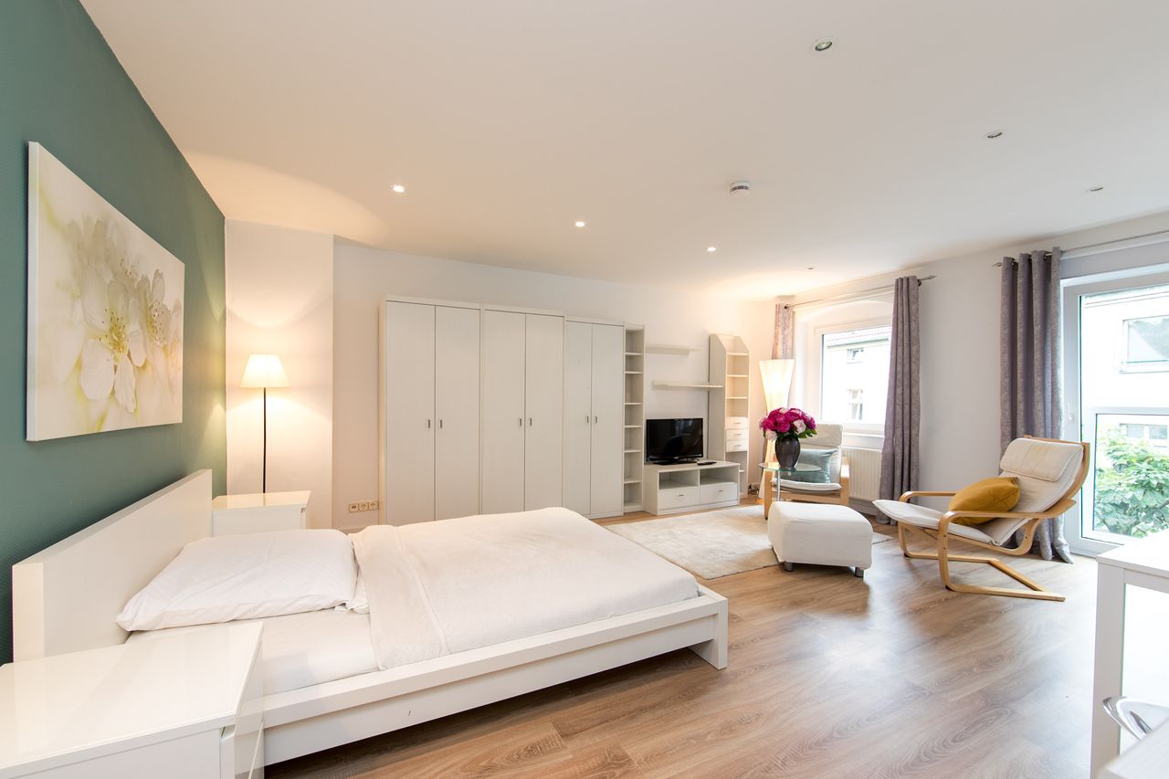 The rent also includes WLAN, GEZ, Cleaning once a month, janitor service and personal support. Only the electricity costs are charged every 3 months on personal consumption. You can get the "Wohnungsgeberbescheinigung" Perfect location in the trendy Prenzlauer Berg district. Around the corner is the Kollwitzplatz, the Kastanienallee, the Wasserturm, the Kulturbrauerei and the famous Mauerpark. It is only a 5 minute walk to the underground station Eberswalder Strasse. From here you can quickly ...