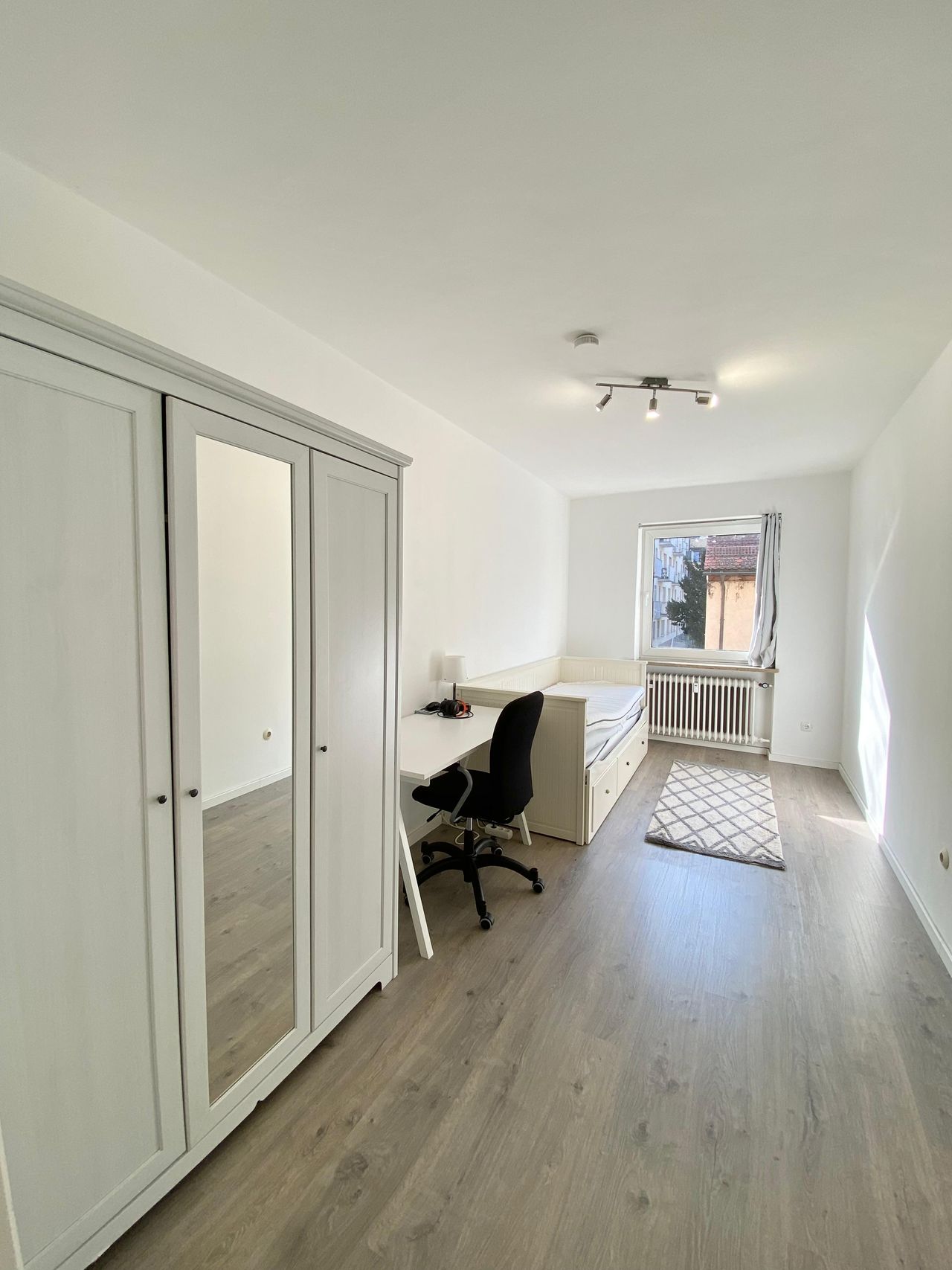 Hello, dear apartment seekers! We have a room available in Milbertshofen. Your beautiful room is part of a 90 sqm shared apartment. There are a total of 3 bedrooms, bathroom, toilet, kitchen and hallway. The room has two large windows, parquet flooring and a balcony. The large windows make the room very bright. The apartment has been recently renovated. The kitchen is equipped with a large refrigerator, a dishwasher, a microwave, a kettle and everything else you need for life. The washer-drye...