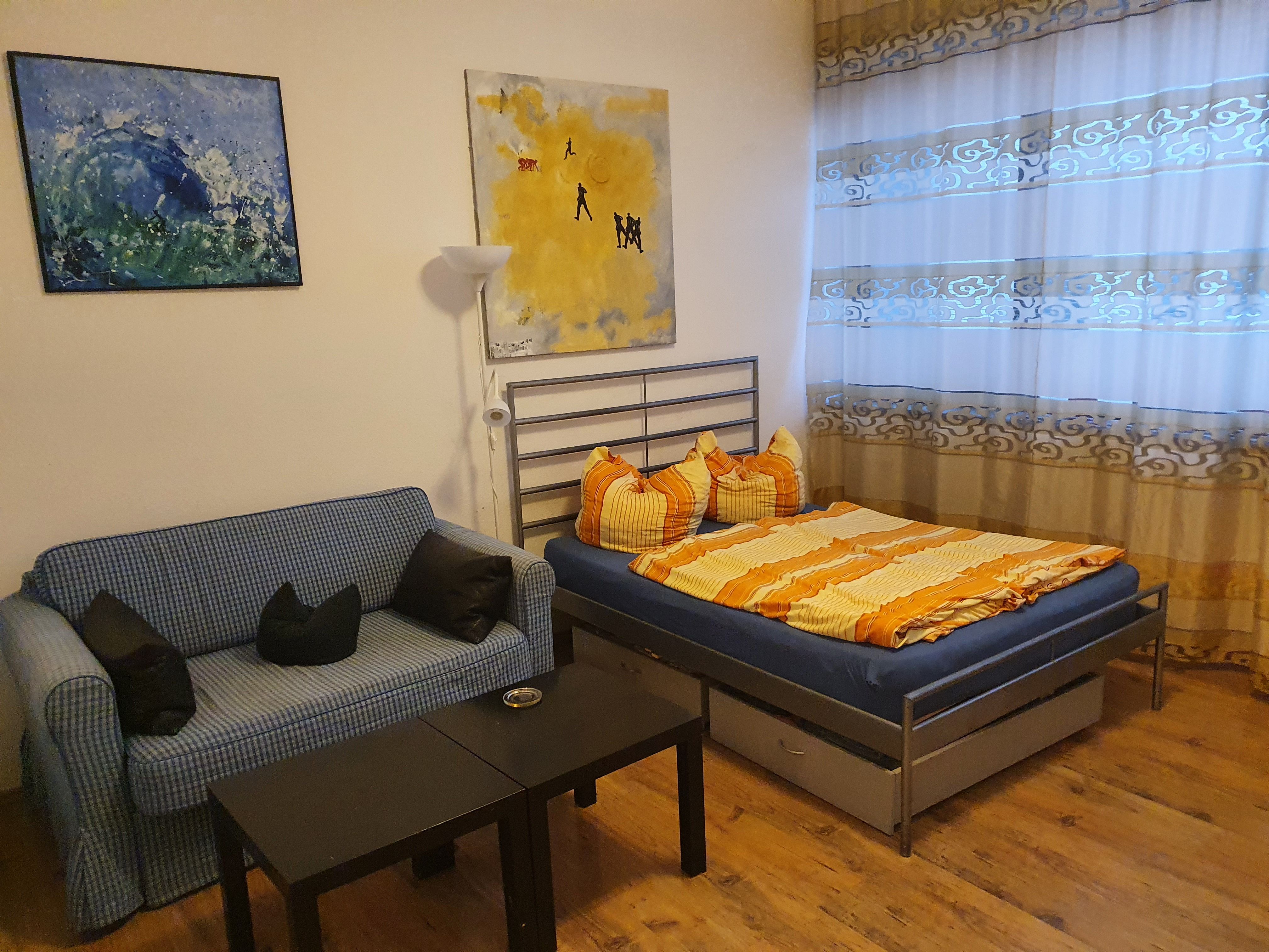 Serviced Studio Apartment with Large Single Bed and Groundfloor Terrace