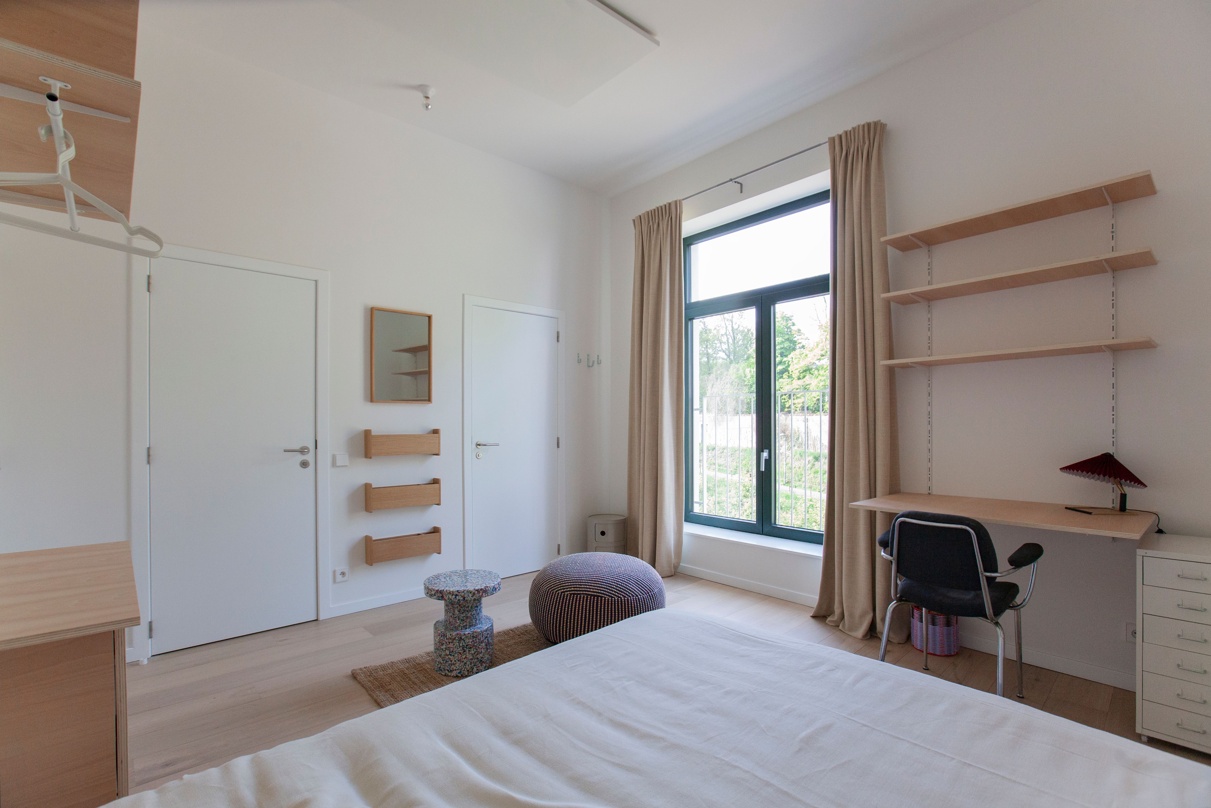 Cozy bedroom with desk and wardrobe