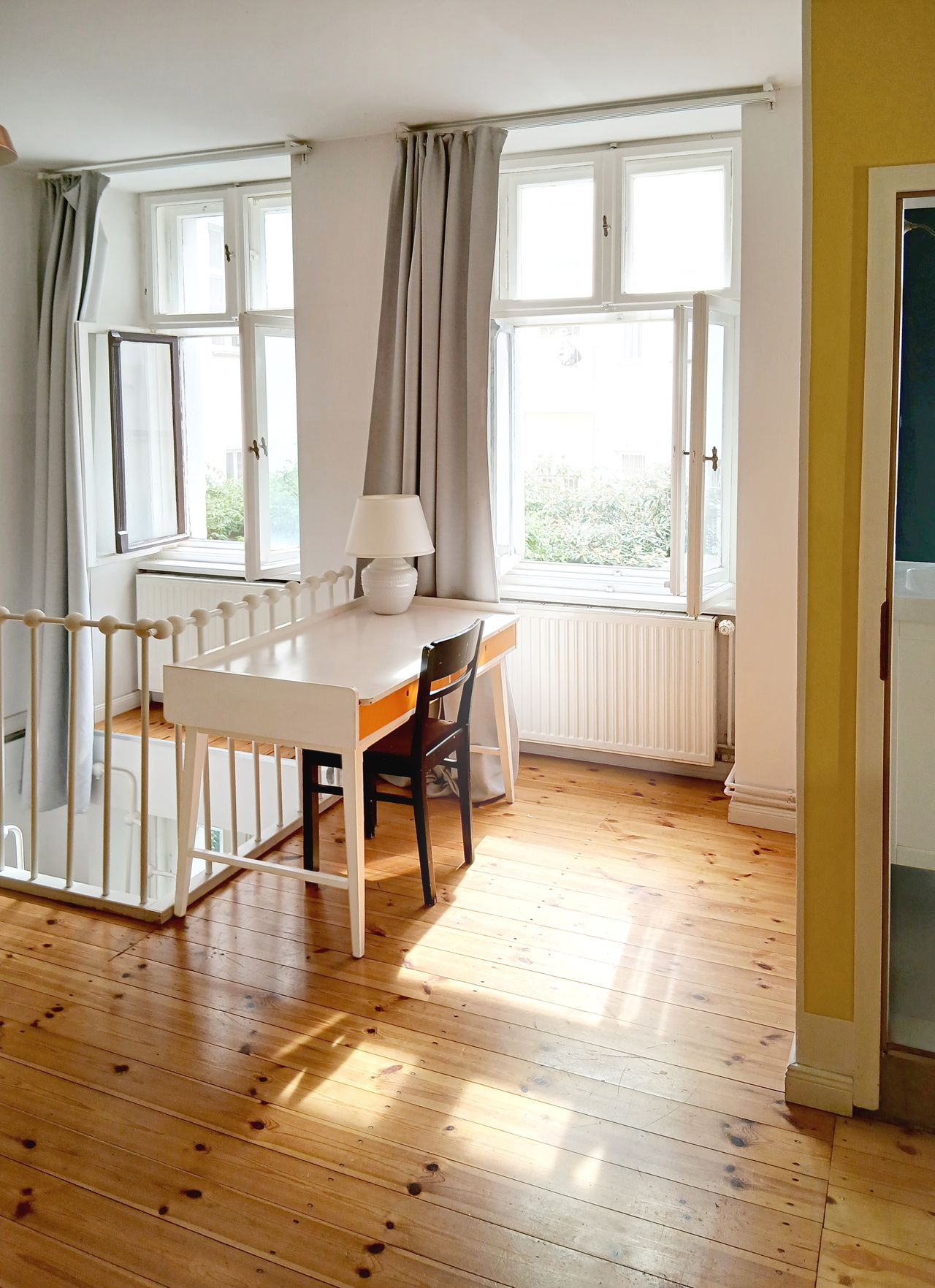 Enjoy living in our bright and peaceful studio Maisonette, nestled in the heart of lively Schöneberg. This unique 100-year-old apartment spans two levels and features a modern kitchen, a newly renovated bathroom, charming wooden floors upstairs and original double-casement windows. Perfect for a quiet retreat in the middle of Berlin’s vibrant life.