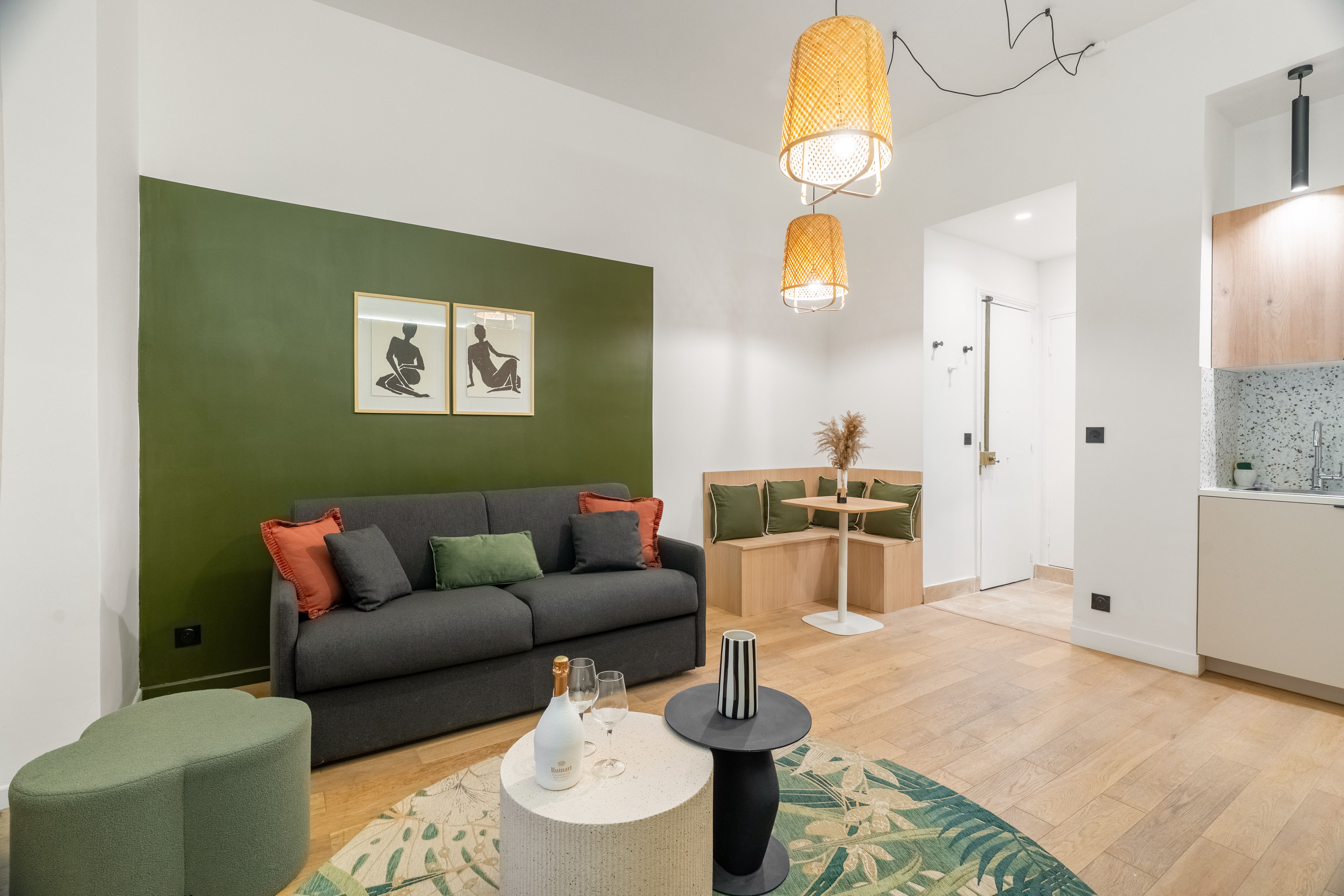 Furnished suite with alcove and garden view, rooftop, garden, gym, home cinema, cleaning and maintenance services in a new residence