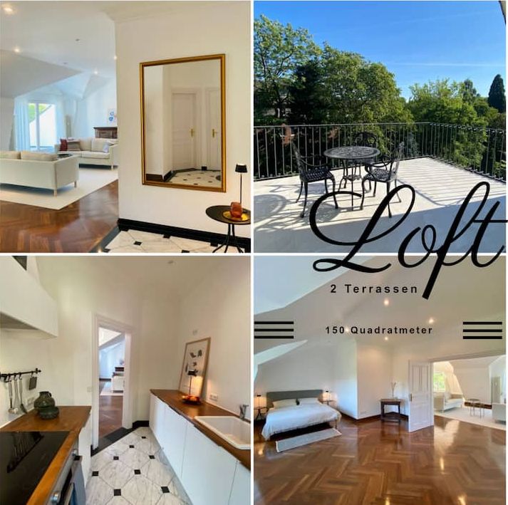 Light-filled designer loft featuring two balconies near Stadtwald – 20 minutes from Düsseldorf Messe
