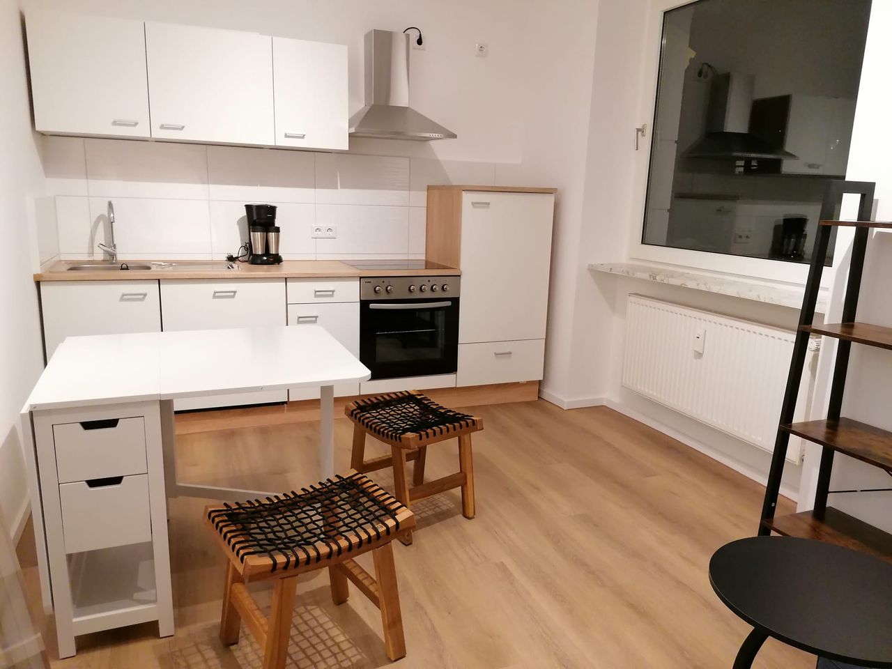 In dieser Wohnung wurde sowohl die Elektrik als auch das (Fenster-)Bad neu gemacht. Darüber hinaus Decken Wände und auch der Boden (hochwertiges Klickvinyl) in Wildeichefarben. Die Wohnung wir komplett möbliert vermietet. Dies beinhaltet eine Schlafcouch, sowie Schränke mit genügend Stauraum und ein Regal, außerdem eine Einbauküche mit Herd, Dunstabzugshaube und Kühlschrank, sowie dem besonderen Luxus einer Spülmaschine. Außerdem ist ein Esstisch mit zwei Sitzgelegenheiten vorhanden. Der Esstisc...