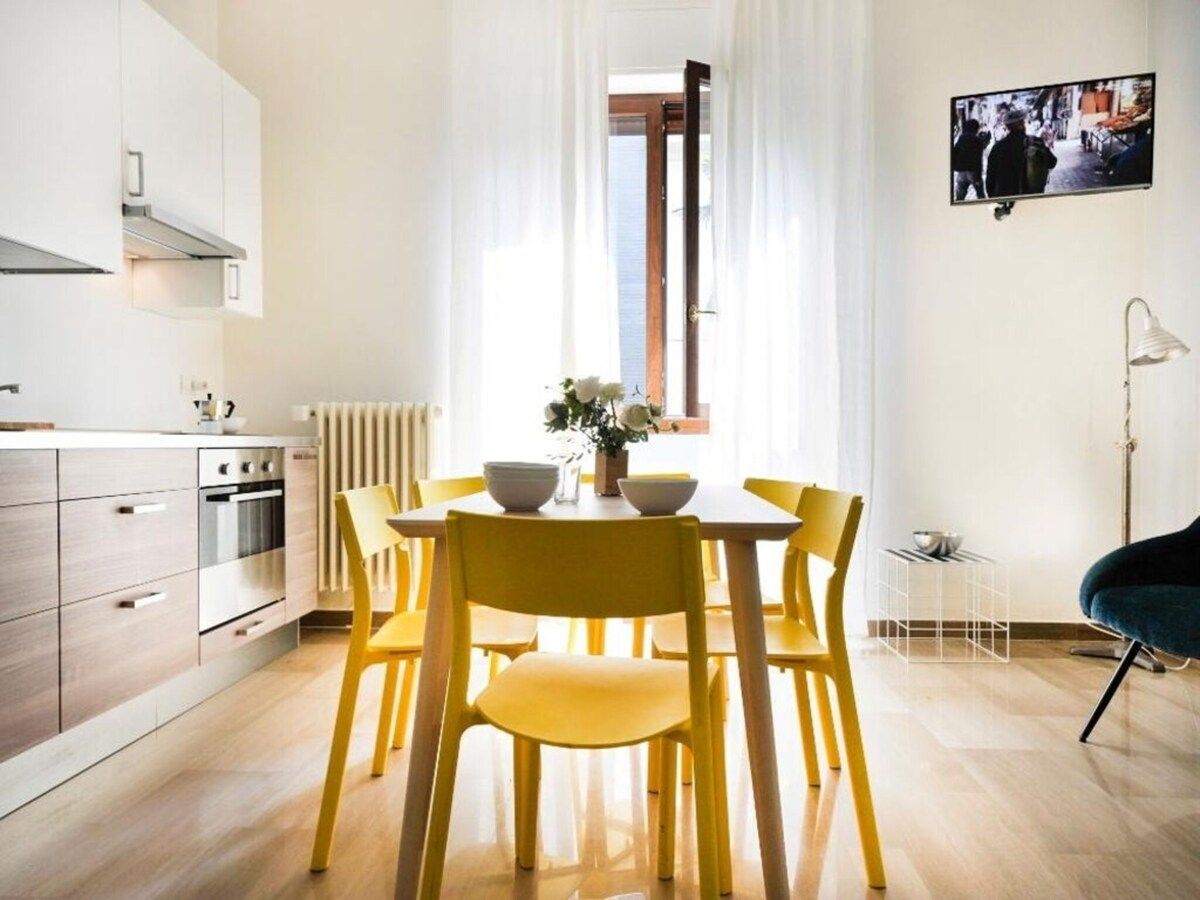 The ground-floor apartment measures approximately 80 m2 and has been recently renovated. It opens onto a foyer (featuring a comfortable coat stand) that leads to the large living area, furnished with Queen-size sleeper sofa, comfortable armchair, TV corner and table for 6. The open-floor kitchen has fridge, freezer, traditional oven, microwave and electric hobs. The room overlooks a very quiet private street. The sleeping area consists of two bedrooms: the first with Queen-size bed, large... The...