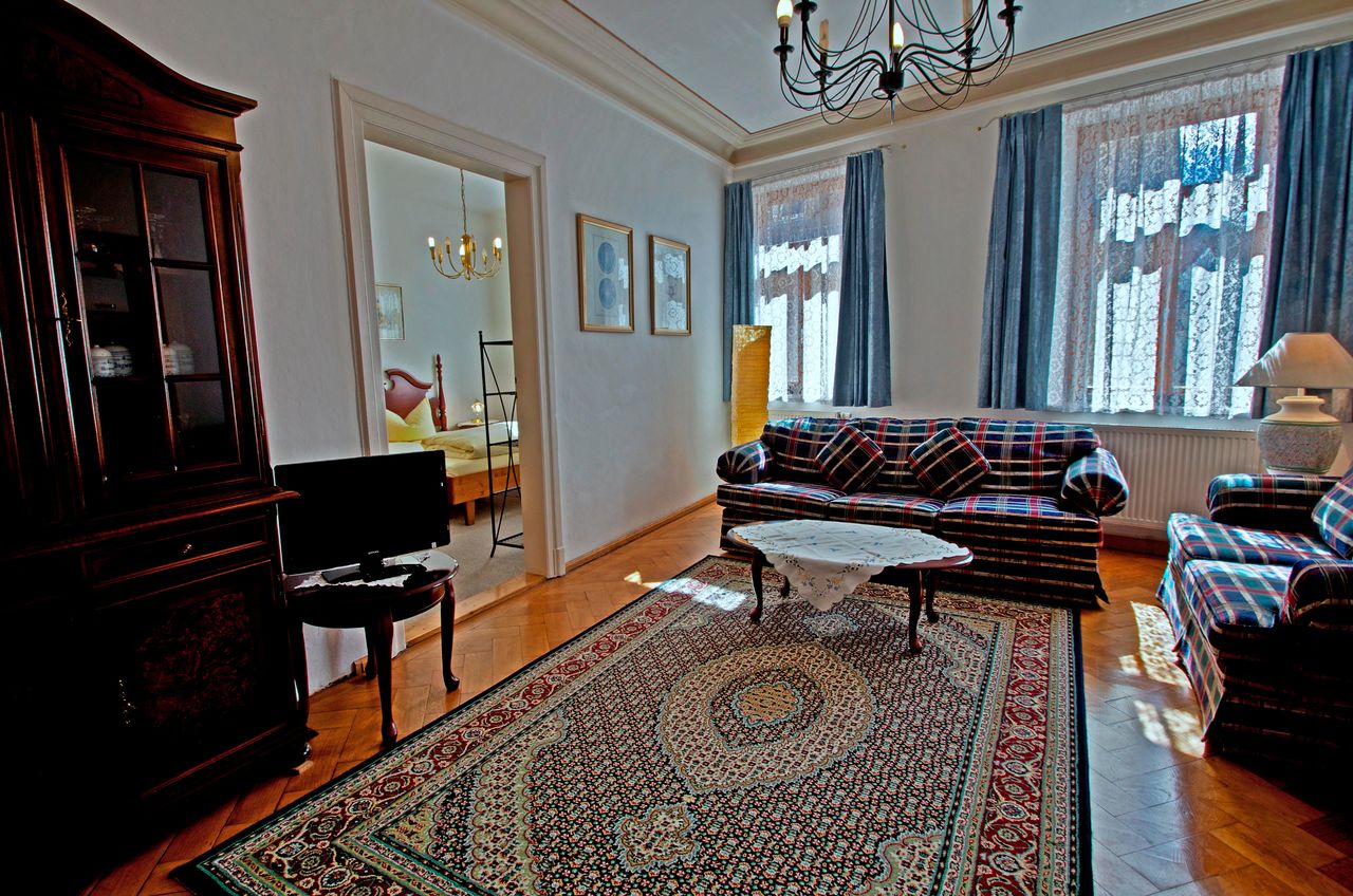 English version below... Deutsch Die schöne 3-Zimmer Wohnung befindet sich in der zweiten Etage und umfasst ca. 55 m². Durch die großen Schallschutzfenster fällt viel Licht in das Apartment. Die Wohnung ist im klassischen Kolonialstil mit gediegenem Mobiliar ausgestattet Das Wohnzimmer verfügt über Echtholzparkett und ist mit zwei gemütlichen Sofas ausgestattet, sowie einer kleineren Essgelegenheit, außerdem gibt es ein SAT-TV. Das Schlafzimmer verfügt über einen weichen Teppichboden, ein kom...