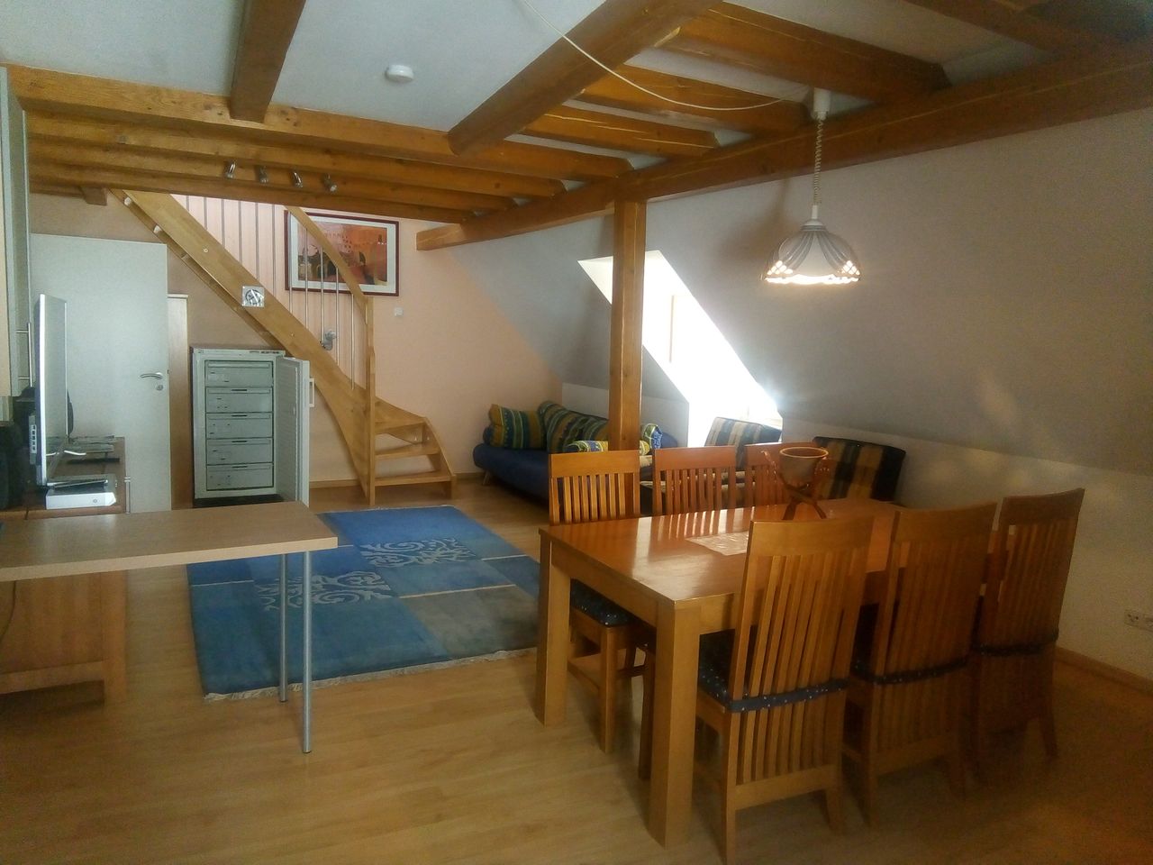 The 2006 Maisonette FeWo am Rathaus is located right in the city centre at the corner of Elias-Holl-Platz and Pfladergasse. From there you can easily explore the entire Augsburg city centre by foot. Everything can be reached in a very short time without a car. The beautiful, newly refurbished 130 square metre flat is located at the 3rd floor/attic in a historic building from the 16th century, which was completely rebuilt in the 1950s. The surrounding buildings at Märzenbad are listed buildings ...
