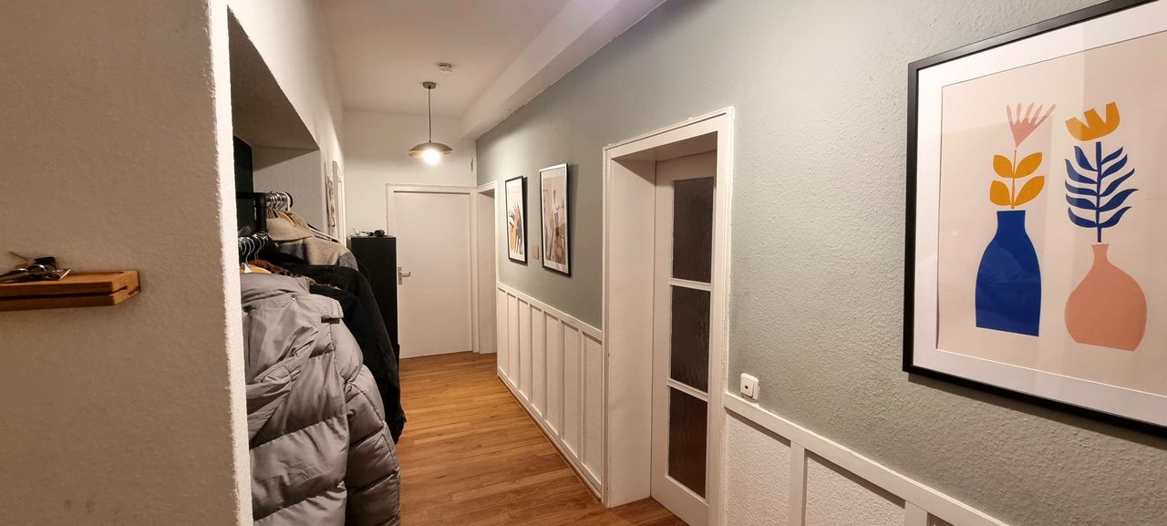 This beautiful 3-room apartment will be rented fully furnished from November 1. The apartment also has a bathtub in the daylight bathroom and a huge south-facing balcony. SBAHN Marktplatz is 2 minutes away. Shopping facilities are 1 minute away.