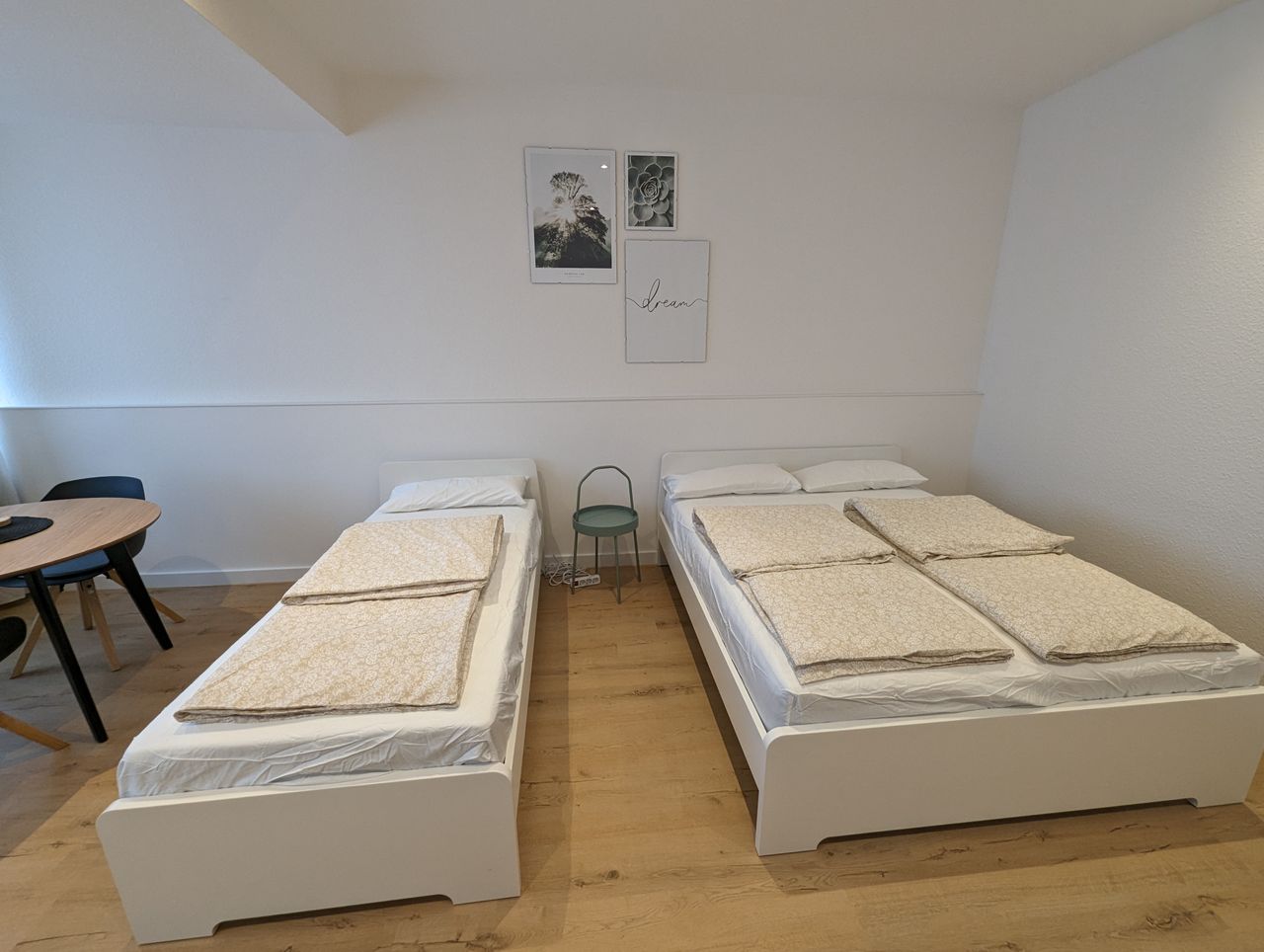 Welcome to our newly launched accommodation complex featuring 2 suites. We offer you our suite 1. Each suite comprises a private room with its dedicated bathroom, offering comfort and privacy. Equipped with a cozy bed, fridge, dedicated workspace, dining table, water boiler, and closet, our rooms ensure a convenient stay. Guests can also access a shared kitchen, fully equipped with modern appliances. Renovated and furnished in March 2024, our entire complex exudes a modern and stylish ambiance. ...