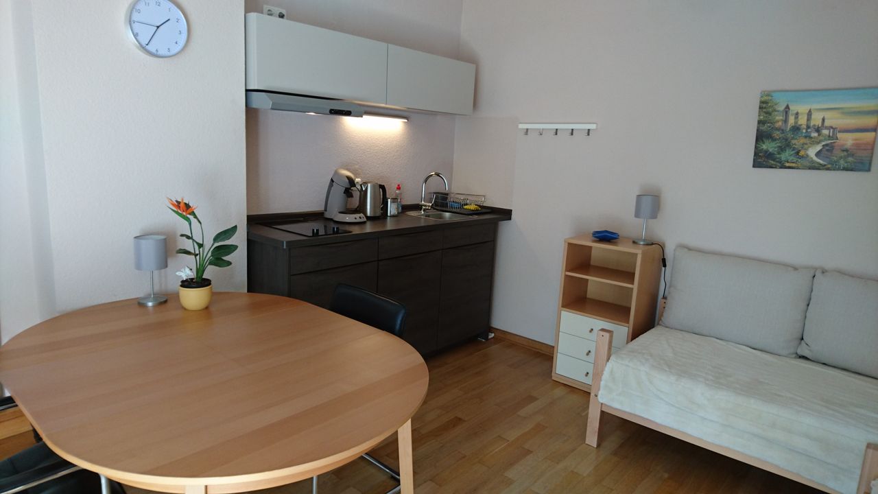 Kleines, aber feines Apartment. Voll ausgestattet mit Geschirr, 2 Induktionskochfeldern, Kühlschrank m. kleinem Eisfach, Mirkowelle, TV. Neue Waschmaschine & neuer Trockner mit Bad. Ruhig gelegen. Erdgeschoss. Separater Eingang. Möglichkeit auch im Außenbereich zu verweilen mit Steckdose und Tisch.....