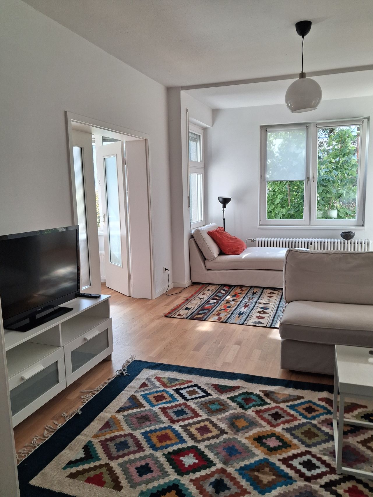 This cosy apartment is suitable for a family with two little children. It is on the first floor of an apartment building with an elevator. The location is very central in Kreuzberg, on the border with Mitte. It is very well connected to public transit: right by two bus stations serving two bus lines (M29 and 248), and about a 10 minute walk to U6, U8 and U2 stops. The apartment is in very good condition, with parquet flooring, and is newly fully furnished. The balcony overlooks a beautiful enclo...