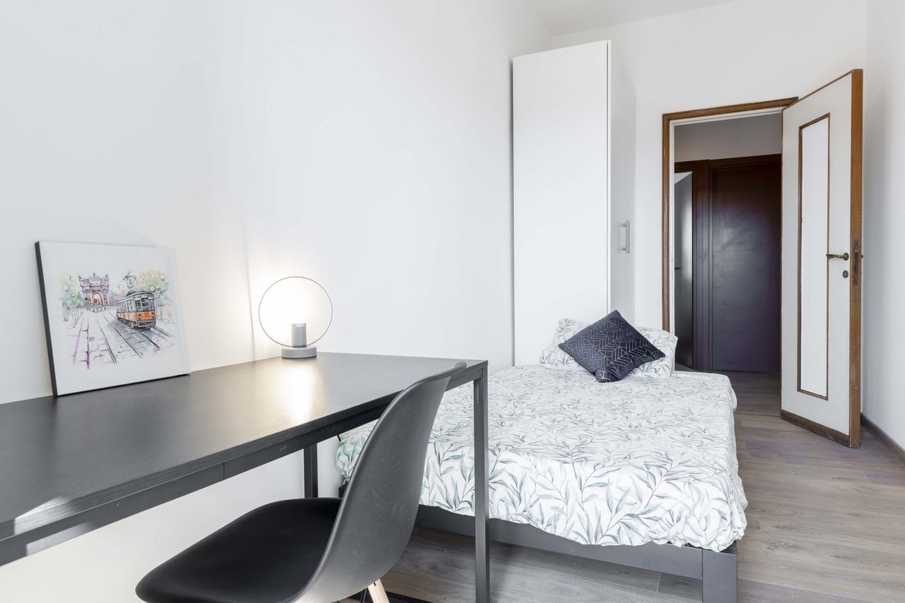 A one-time admin fee of €1146,8 (incl. VAT) is paid to the property management. This shared apartment offers a comfortable living arrangement with 6 bedrooms and 2 bathrooms. Key features include air conditioning, a concierge service, an elevator, and a shared balcony. The space is fully equipped with a desk, wardrobe, and a full-size bed, along with a kitchen featuring a dishwasher, and laundry facilities including a washing machine, dryer, and iron. The monthly rent is all-inclusive, coverin...