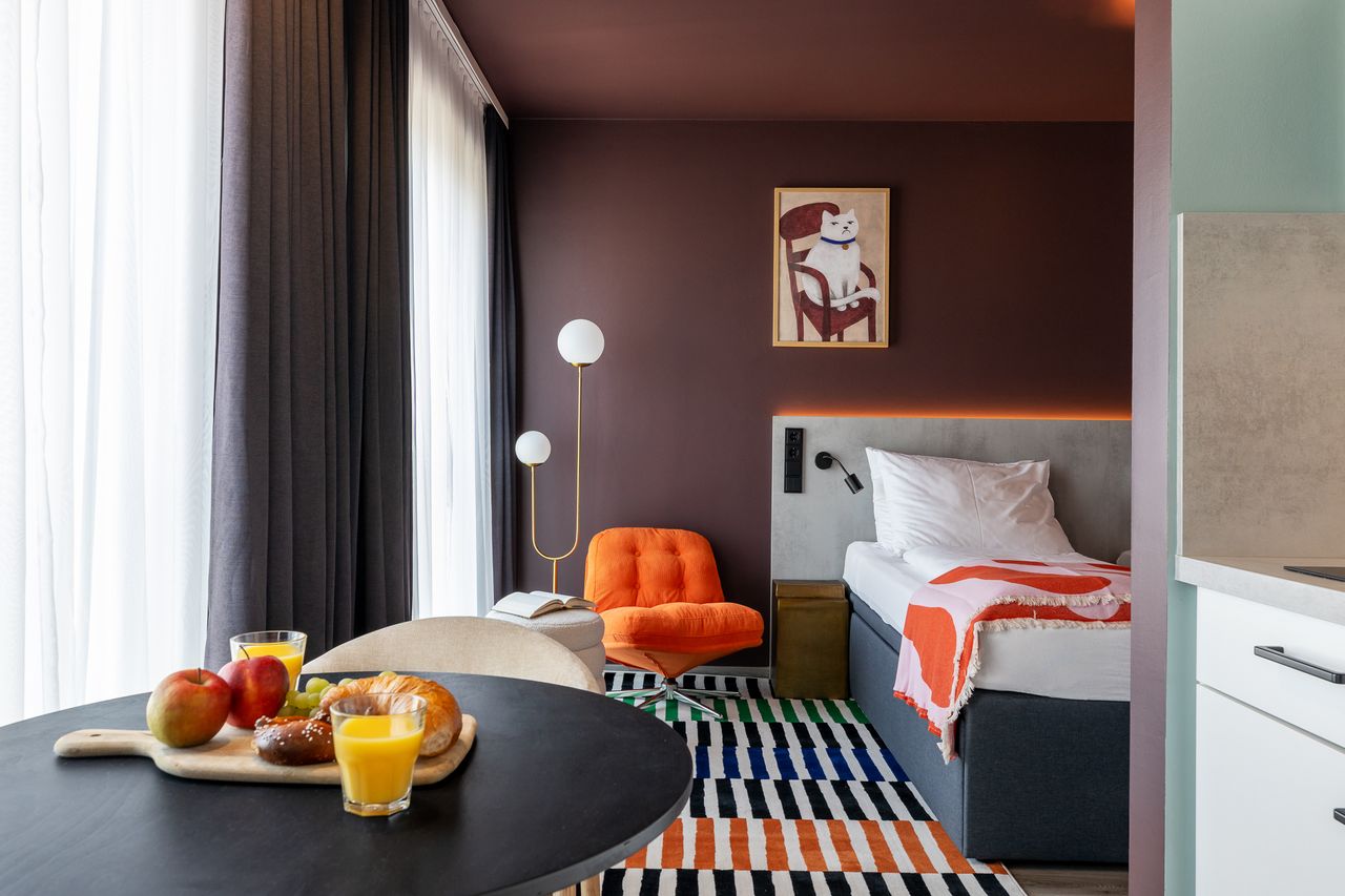 This charming and cozy studio apartment offers everything you need for a relaxing stay. Modern furnishings, stylish details, fully equipped kitchen, wardrobe including iron and ironing board, safe, etc. The studio is located in the east of Munich near the Munich Trade Fair and has excellent transport links. The Moosfeld subway station is a 3-minute walk away, and the U2 subway takes you to Munich city center in 15 minutes. Two single beds, one sleeping sofa Included in the price is also a we...