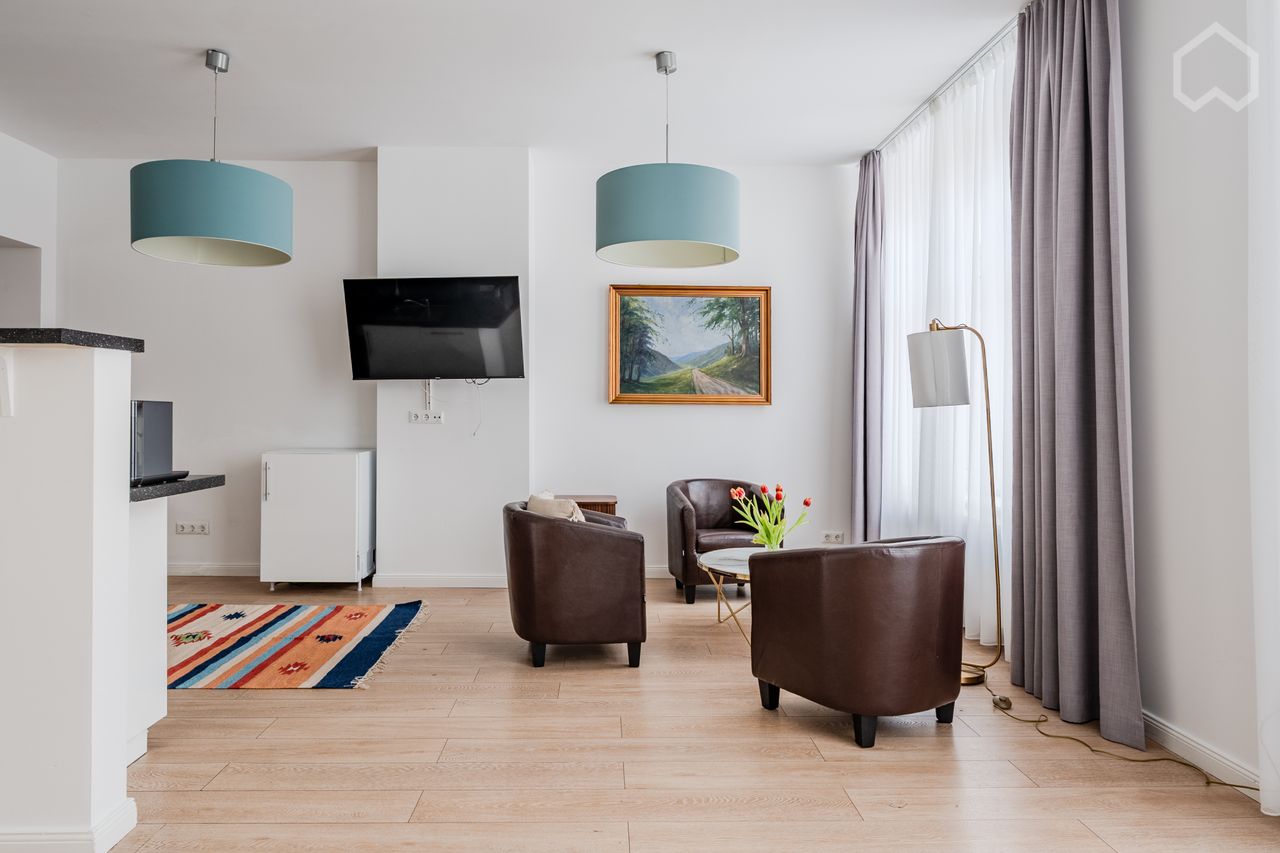 Managed by Wunderflats: THIS APARTMENT HAS BEEN PERSONALLY VERIFIED AND IS MANAGED DIRECTLY BY THE WUNDERFLATS PLUS TEAM. This exceptional apartment offers a combination of space, light, and privacy. With very high ceilings and large windows throughout, the apartment is filled with natural light, creating a bright and open living atmosphere. The apartment features two spacious bedrooms, each furnished with a dedicated desk, making it ideal for professionals or anyone working from home. The gen...