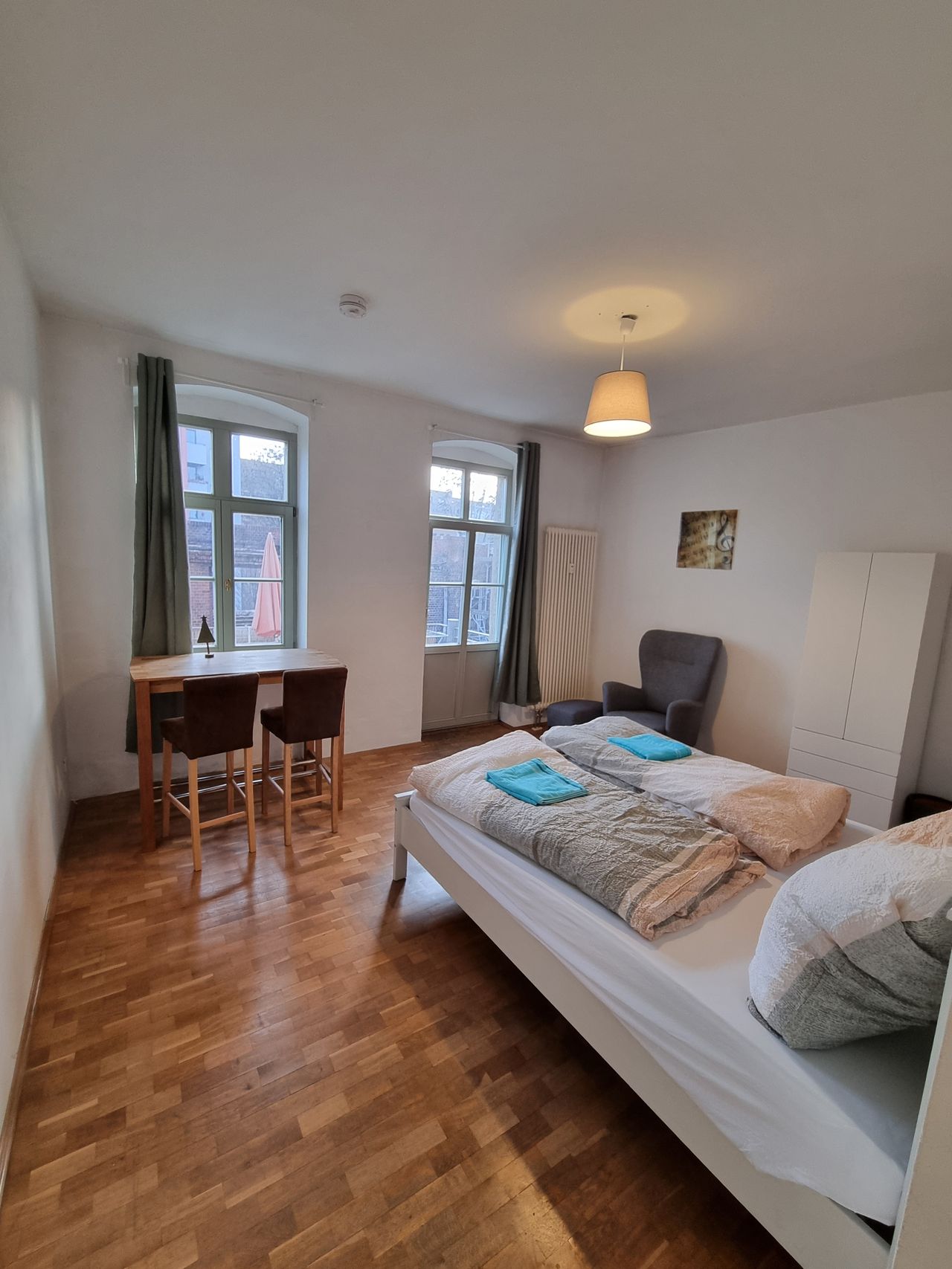 Great furnished apartment in the heart of Dresden, in a quiet backyard setting. Two windows and a balcony door create a bright, welcoming one-room apartment with a fitted kitchen on the 2nd floor. The building is primarily occupied by young people, creating a relaxed atmosphere. The apartment is furnished and ready to move into. The bed (160 cm wide) is new and includes a great mattress. Everything you need (sights, supermarkets, parks) is within walking distance.