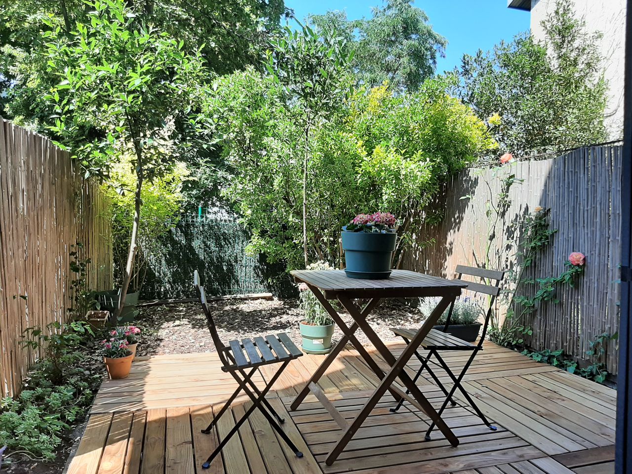 Studio meublé de 23m2 avec terrasse/jardin de 16m2 en très bon état, comprenant : - entrée avec placards, - pièce principale de 17m2 avec un canapé lit de qualité, avec un matelas de 18 cm d'épaisseur - coin cuisine avec plaques électriques, four, petit réfrigérateur, placards et ustensiles de cuisine, - salle de douche avec wc. 2e étage (sans ascenseur) d’un immeuble récent très bien entretenu. 7 minutes à pied du métro Corentin Celton (ligne 12). Loyer charges comprises : 980 euros. Chauffa...