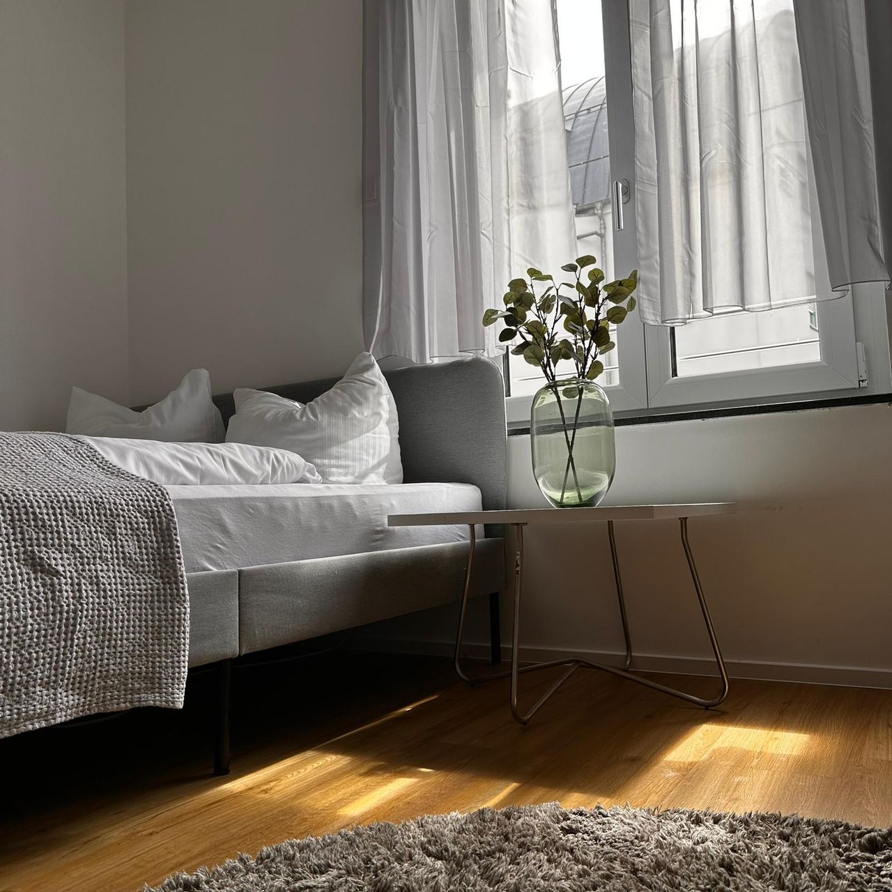 ma suite Augsburg Herzlich willkommen bei ma suite! Das Apartment befindet sich im Herzen vom Augsburger Domviertel und ist trotzdem ruhig gelegen. Unser Design Studio-Apartment verfügt alles, was du für einen schönen Aufenthalt brauchst: → Gemütliches Doppelbett → Smart-TV mit NETFLIX → NESPRESSO Kaffee → Küchenzeile → Waschmaschine → Super zentral gelegen → gegen Aufpreis privater Tiefgaragenstellplatz