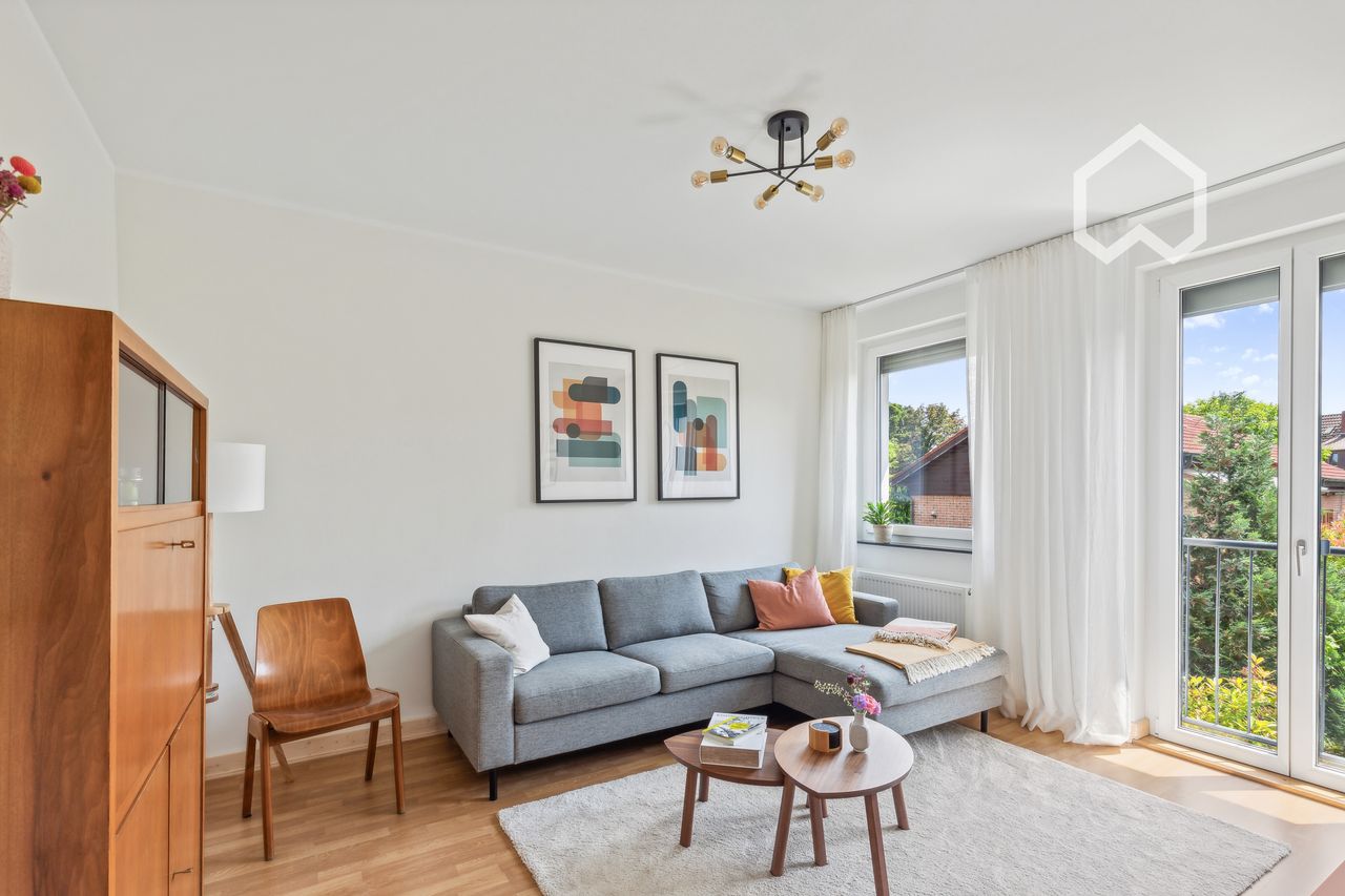 This comfortable apartment with contemporary flair offers an inviting, light-flooded atmosphere in a two-family house. The three lovingly designed rooms, the cozy kitchen and the modern renovated bathroom create a generous feeling of space and are furnished with great attention to detail. Modern furniture mixed with vintage furniture gives each room a special and inspiring atmosphere. The kitchen is fully equipped with enough crockery and cooking utensils to develop your own cooking skills. A S...