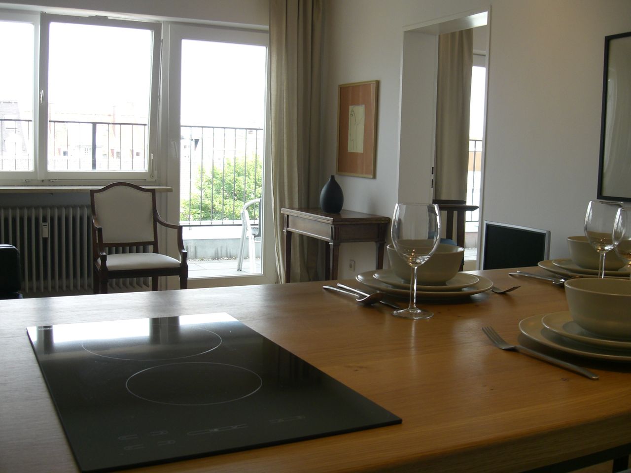 Die 2-Zimmer-Dachterrassenwohnung befindet sich im obersten Stockwerk eines gepflegten Mehrfamilienhauses - natürlich mit Aufzug. Von der großzügigen Dachterrasse hat man einen einzigartigen Rundblick über das Münchner Glockenbachviertel. Beide Zimmer der 45 m² großen Wohnung liegen vollkommen ruhig zum begrünten Innenhof. Die Ausstattung ist exklusiv. Hochwertige Details, massives, geöltes Eichenparkett, klassisch modernes Design und ausgesuchte Antiquitäten machen die Wohnung einzigartig.