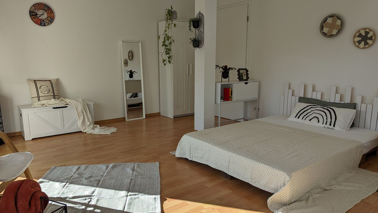 We are looking for a tenant for our beautifully furnished private room of 25 sq.m in a 2.5 room 73 sq.m apartment facing south. The apartment has 2.5 rooms with fitted kitchen, bathroom, hallway, balcony and cellar. The room is available with ANMELDUNG and the room is available for only one person! The apartment is in perfect condition, very well lit and bright. Both south-facing rooms receive direct sunlight throughout the day and have direct access to the balcony. All necessary furniture in...