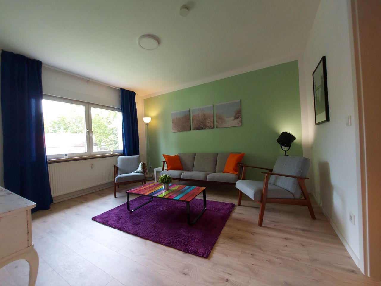 THE APARTMENT Elegant, bright, and fully furnished apartment – attractively furnished – with a loggia in a quiet, green location in Duisburg-Rheinhausen. Central hallway with a large mirror. From here, you can access the bathroom, kitchen, and living room. Spacious and fully equipped kitchen with all the utensils you need every day. In addition to a washing machine, dishwasher, ceramic hob, oven, refrigerator/freezer, microwave, toaster, hand blender, kettle, coffee maker, and plenty of work ...