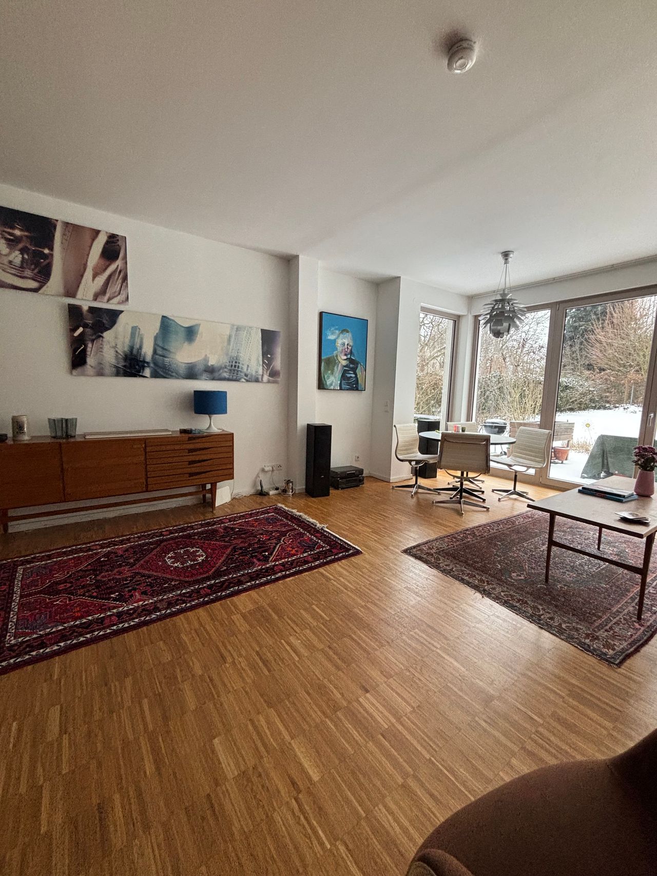 This elegant newly built apartment in the prominent "Komponistenviertel" features high-quality vintage furnishings and a carefully curated interior. Floor-to-ceiling windows in the living room and one bedroom open directly onto two separate terraces and offer beautiful views of the partially private garden, creating a seamless connection between indoor and outdoor living. A tall pampas hedge ensures a high level of privacy from spring to autumn, making curtains unnecessary while minimizing an...