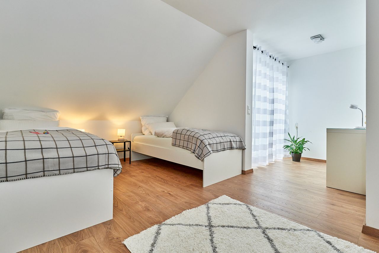 Willkommen in Grünwinkel, in Ihrem neuen Zuhause. Diese attraktive 4-Zimmer-Maisonettewohnung bietet Ihnen ein modernes und stilvolles Wohnambiente auf 2 Etagen. Ein Arbeitsplatz in einem der Schlafzimmer steht zur Verfügung. Die beiden Balkone laden zum gemütlichen Verweilen ein. Die gehobene Ausstattung sorgt für Wohlbefinden in allen Räumen. Ein überdachter Stellplatz ist direkt auf dem Grundstück vorhanden.