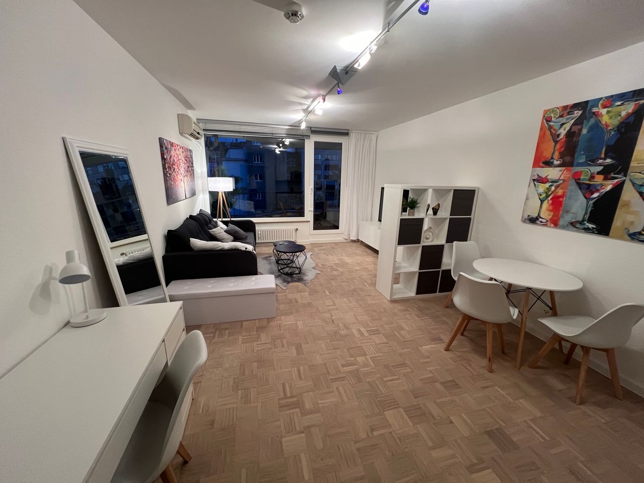 - Living/sleeping area with open kitchenette, bathroom with shower and toilet - On the 4th floor of an apartment building with elevator - High-quality wood floor, tiles in the bathroom - Rent incl. additional costs, heating, electricity, water, Wifi internet - Fully equipped fitted kitchen with stove, oven, refrigerator - Bed, work desk, wardrobe, dining table, 65-inch TV, internet/Wi-Fi included, ready to move in only with a suitcase - Shopping facilities, restaurants, and infrastructure ...