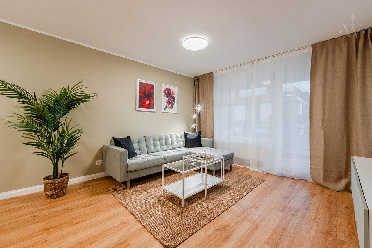 This cozy 2-room apartment is located on the third floor of a beautiful building and has a spacious living room with sofa bed, a lovely kitchen, a cozy bedroom and a modern bathroom.