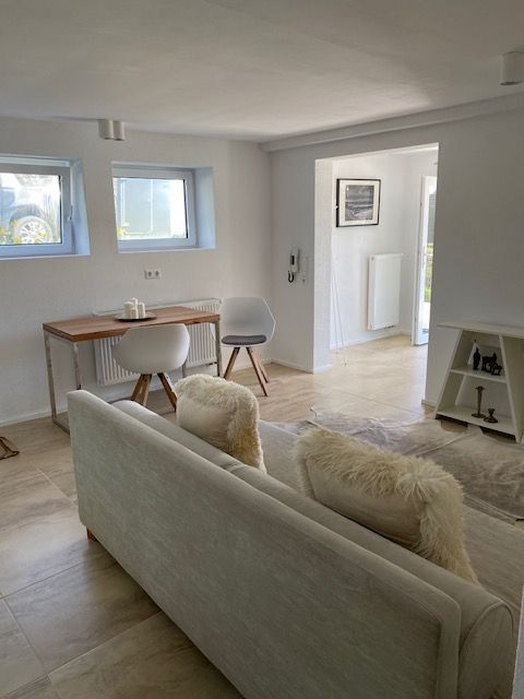 For rent from 15.04.2025 is a top furnished 2-room apartment on the first floor in the villa district of Sindelfingen-Maichingen. The rent is WARMLY furnished, details see below. The apartment is rented ONLY FURNISHED & only for a limited time (at least 3 months. Total duration individually negotiable). Single apartment. It is not suitable for several people or families due to the layout. Pets possible by arrangement. The apartment has the following features: - Floor-to-ceiling windows/doors ...