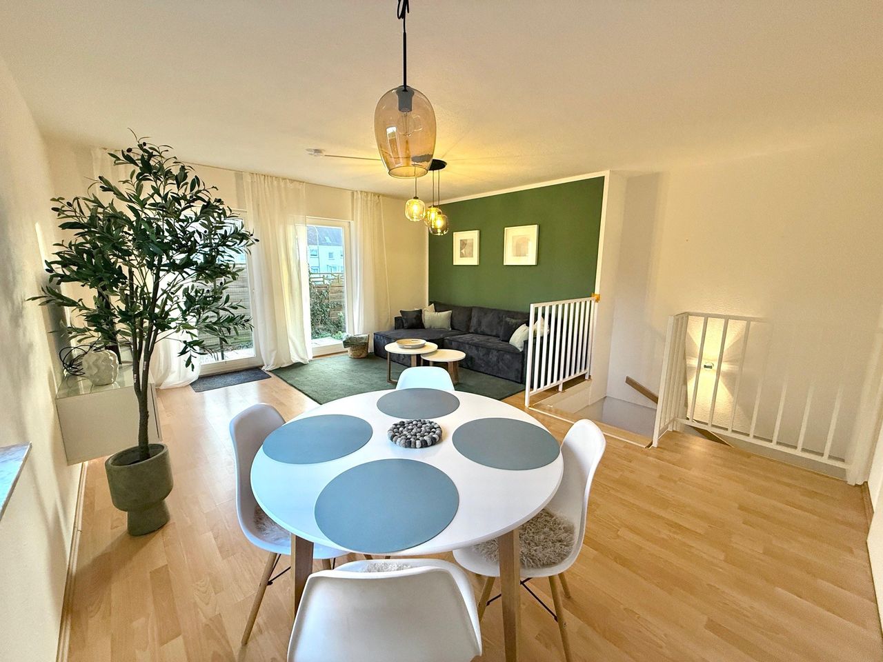A high-quality, fully furnished 2.5-room apartment in Langen (Hesse), ideal for temporary living, is available for rent. The apartment has a two-story layout (ground floor/basement) with a separate entrance and terrace, which offers a high level of living comfort and privacy. On the ground floor there is the bright living and dining area with access to the terrace as well as the fully equipped kitchen and a guest toilet. The furniture is modern and functional - you can move in immediately wit...