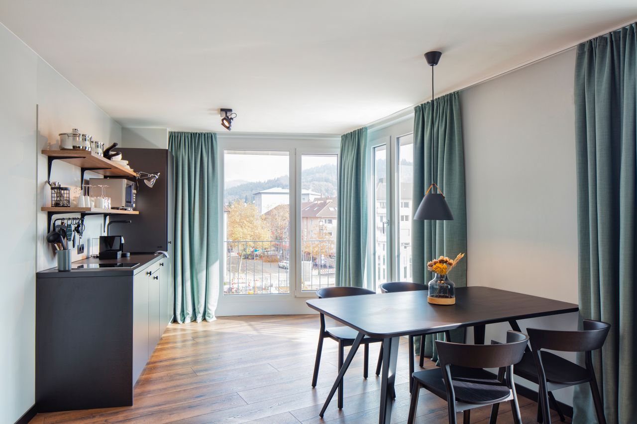 The luxurious, fully equipped suite is located in a modern new building, in a central location and has a living area of approx. 39 - 54 sqm. The apartment has real wood parquet flooring and is equipped with a large satellite TV. In addition, there is a sociable dining area, which offers space for 4 people. The comfortable seating area with couch, armchair and side table, invites you to linger. In the separate bedroom, is a comfortable double bed, with anti-allergenic mattress, and a spacious c...