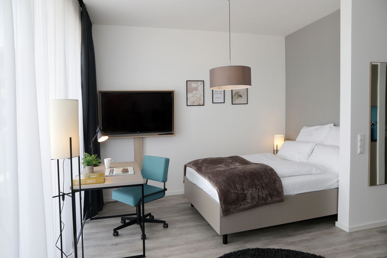The apartments have an equipped kitchenette with crockery, cutlery, cooking utensils and glasses, toaster, kettle, microwave, stove with 2 hotplates, refrigerator with freezer, Nespresso machine, desk, laptop safe, TV, queen size bed (1,40m x 2,00m) and much more. In the communal areas there are washing machines and dryers, which can be controlled and paid for via an app, and a snack machine. The location right in the center of Dortmund is unbeatable and a lot can be reached directly from here. ...