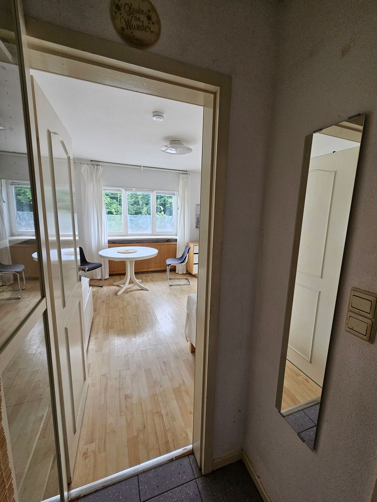 Living room: The comfortable couch invites you to relax. The round dining table is extendable so that there is space for both eating and working if required. The bed has a high-quality box spring mattress (140cm wide). The closet and a chest of drawers as well as several shelves offer enough storage space. Separate kitchen with daylight (window): Fully equipped kitchen including kitchen utensils (dishes, cutlery, pots, pans, cutting boards, etc.). The kitchen also has: refrigerator with free...