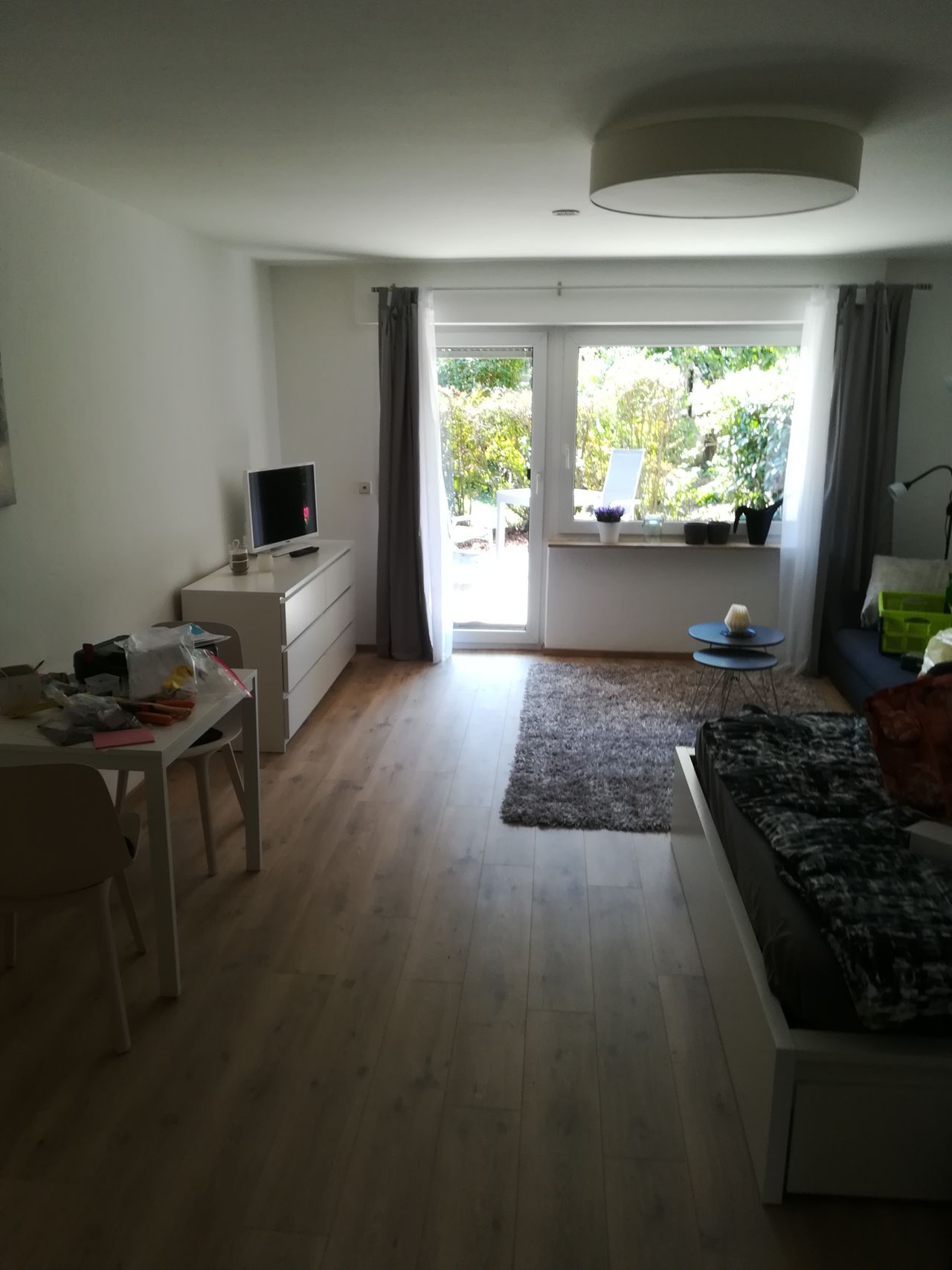 Sunny, modern furnished 1-room apartment with terrace, garden and parking space in a quiet, yet conveniently located in Asperg. The village center of Asperg with many shopping facilities/restaurants can be reached in maximum 5 minutes by foot. A REWE is 3 minutes on foot and the suburban train station (S5) as well as the bus station Asperg (direct connection to Bosch Schwieberdingen) is only 8 minutes away on foot. Living/sleeping room: sofa, a French bed (160 x 200), chest of drawers with smar...