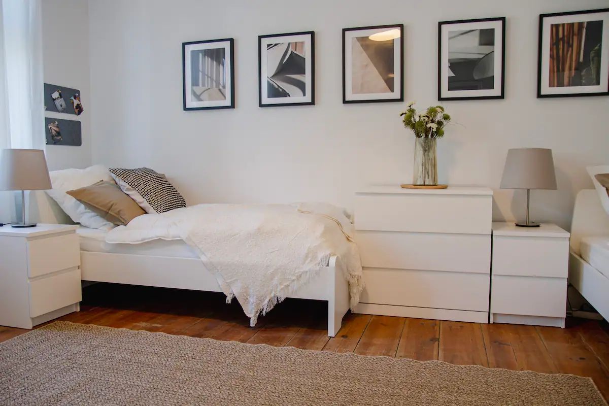 Welcome to our 115 m² spacious and comfortable apartment, ideally located in the quiet town of Grünheide on Friedrich-Engels-Str. Whether you are here for business or pleasure, our accommodation offers everything you need for a pleasant stay. There are 2 spacious bedrooms, each with three single beds. All beds are equipped with fresh bed linen and plenty of storage space for your belongings.