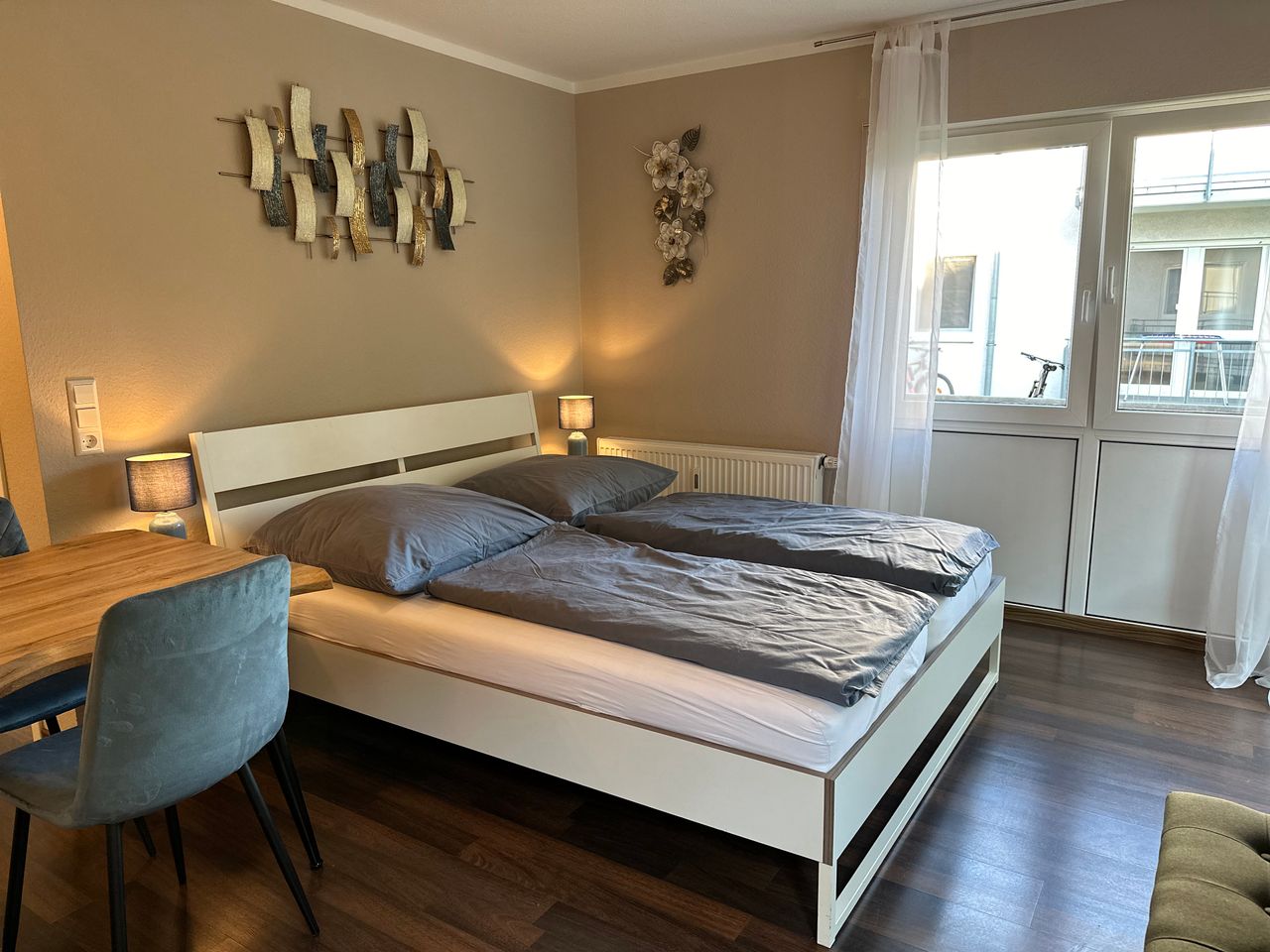 The light-flooded 1-room apartment (30 m²) on the ground floor impresses with its high-quality equipment: - Laminate floor - large corner balcony (10 m²) - double bed (1.80m) - spacious wardrobe - comfortable armchair - Flat screen with digital cable TV - free WIFI - Fully equipped kitchen with dishwasher, ceramic hob, oven, fridge with freezer compartment, extractor hood, coffee machine, toaster, kettle, crockery, pots, etc. - Bathroom with rain shower - Cleaning utensils are available, initia...