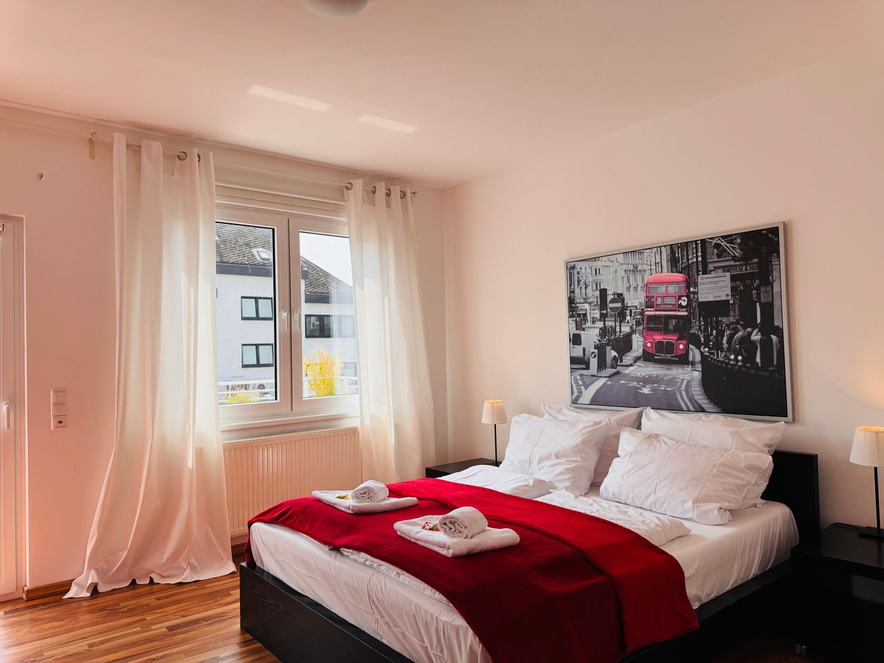 Enjoy Koblenz in a modern apartment in a prime location. Welcome to this beautiful 54 m² apartment that offers everything you need for a great stay in Koblenz: → Large, inviting bed → 2 rooms → Smart TV with NETFLIX → NESPRESSO coffee machine → Separate kitchen → Prime location – right in the old town → 4 minutes’ walk to the Moselle → 9 minutes’ walk to Koblenz City Center station → Balkony → Fast Wi-Fi