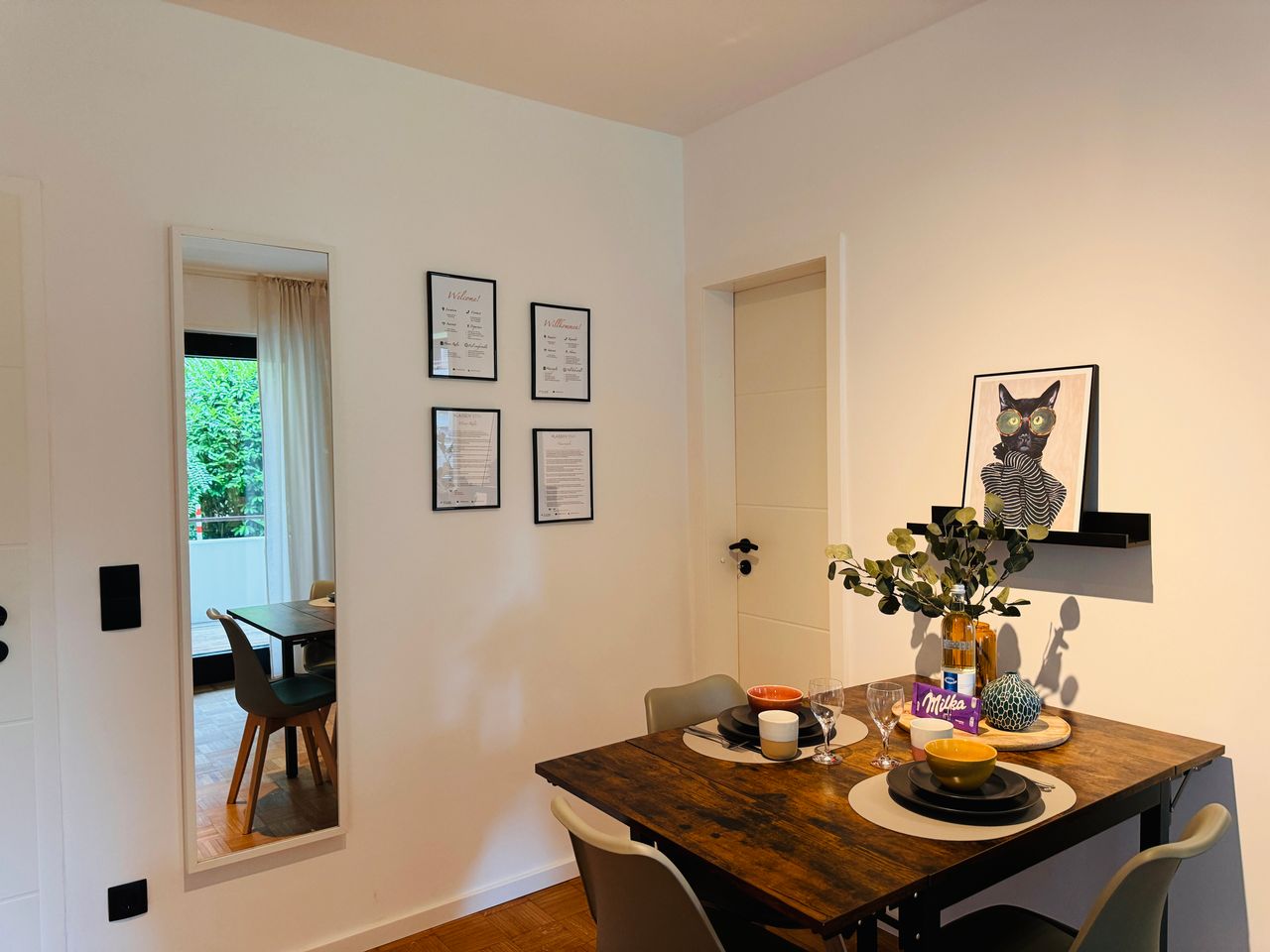The 40m² apartment has been stylishly furnished for you. It is located in a great area of Essen Rüttenscheid – central yet quiet. Start your morning with a delicious coffee from our Nespresso coffee machine and enjoy breakfast on the balcony. The apartment is very cozy and features a comfortable French bed (1.40m wide), a smart TV with Netflix, and a fully equipped kitchen with a stove, fridge-freezer, and everything you need. The beautiful bathroom has a modern shower, so you can freshen up ...
