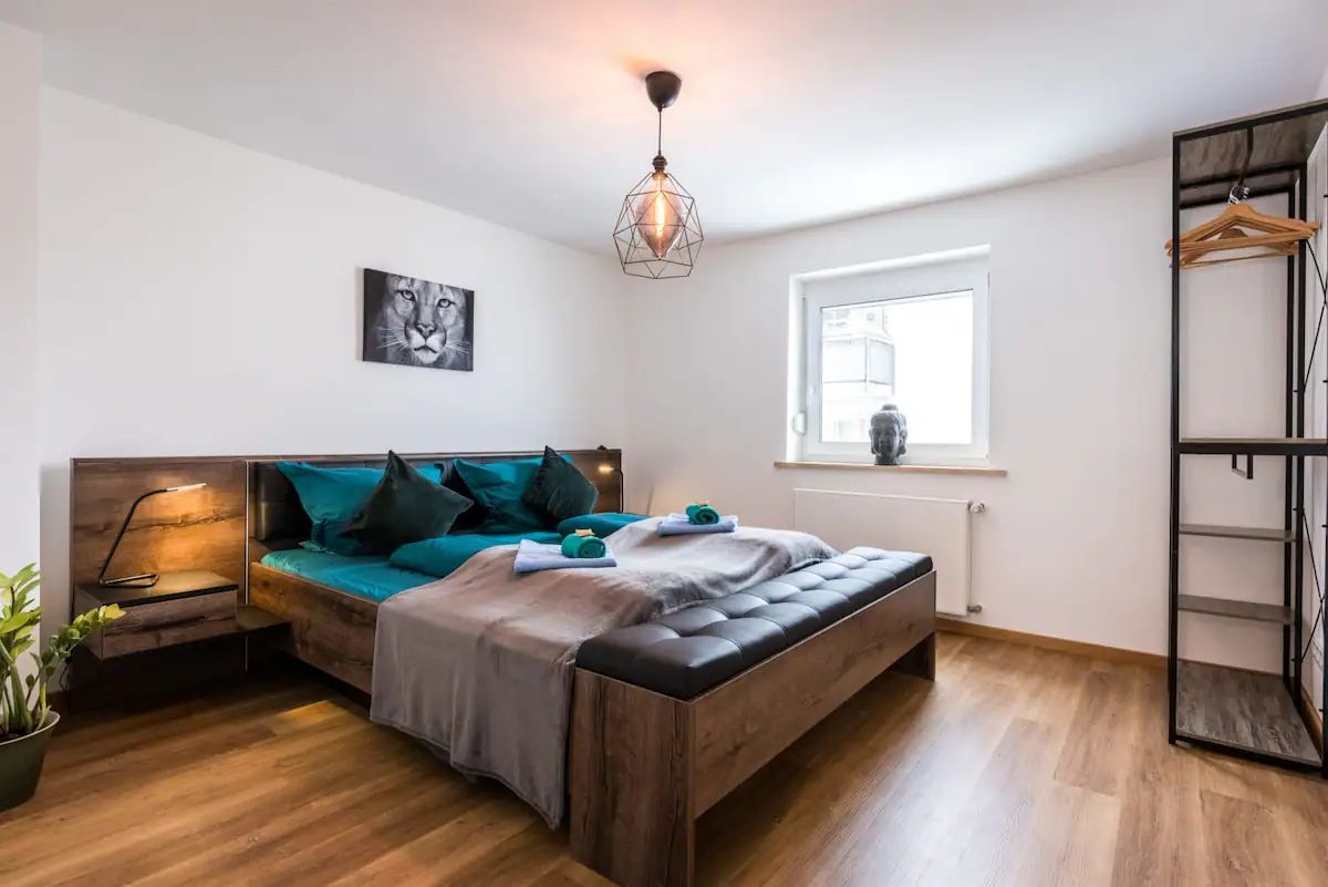 Herzlich willkommen in deinem modernen und frisch renovierten Zuhause! Erlebe Komfort und Stil in diesem Apartment, das alles bietet, was du für einen entspannten Aufenthalt benötigst: - Großes Schlafzimmer mit einem gemütlichen Kingsize-Bett und durch Rollos abgedunkelten Fenstern für erholsame Nächte. - Eine voll ausgestattete Küche mit Geschirrspüler, Kühlschrank, Gefrierschrank, Herd, Backofen und einer Nespresso-Kaffeemaschine. - Entspanne im Wohnbereich auf dem flexiblen Schlafsofa, ideal...