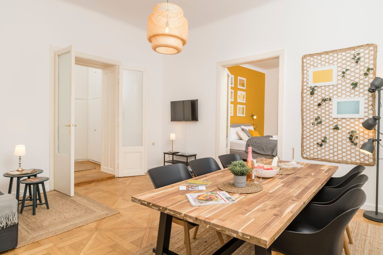 Experience the lovely 6th district, Mariahilf, in our charming, modern Luxury Suites Mariahilf apartment. The stylish space offers room for up to 6 guests, with two double beds and a two-person pull-out sofa in two separate bedrooms. The flat has been decorated with great attention to detail to create a bright and homey space. The modern bathroom is equipped with a bathtub and a WC. There is also an additional toilet. A fully equipped kitchen enables you to make a home-cooked meal before or afte...