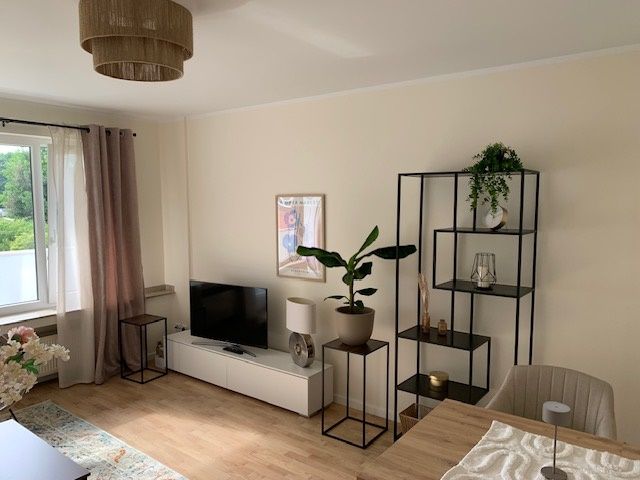chic, newly renovated 3-room apartment fully equipped (ready to move in with a suitcase) in Meerbusch Büderich. Public transport and parking space right next door. Supermarkets are 5 minutes walk away. 15 minutes from the main train station and the airport Duesseldorf.