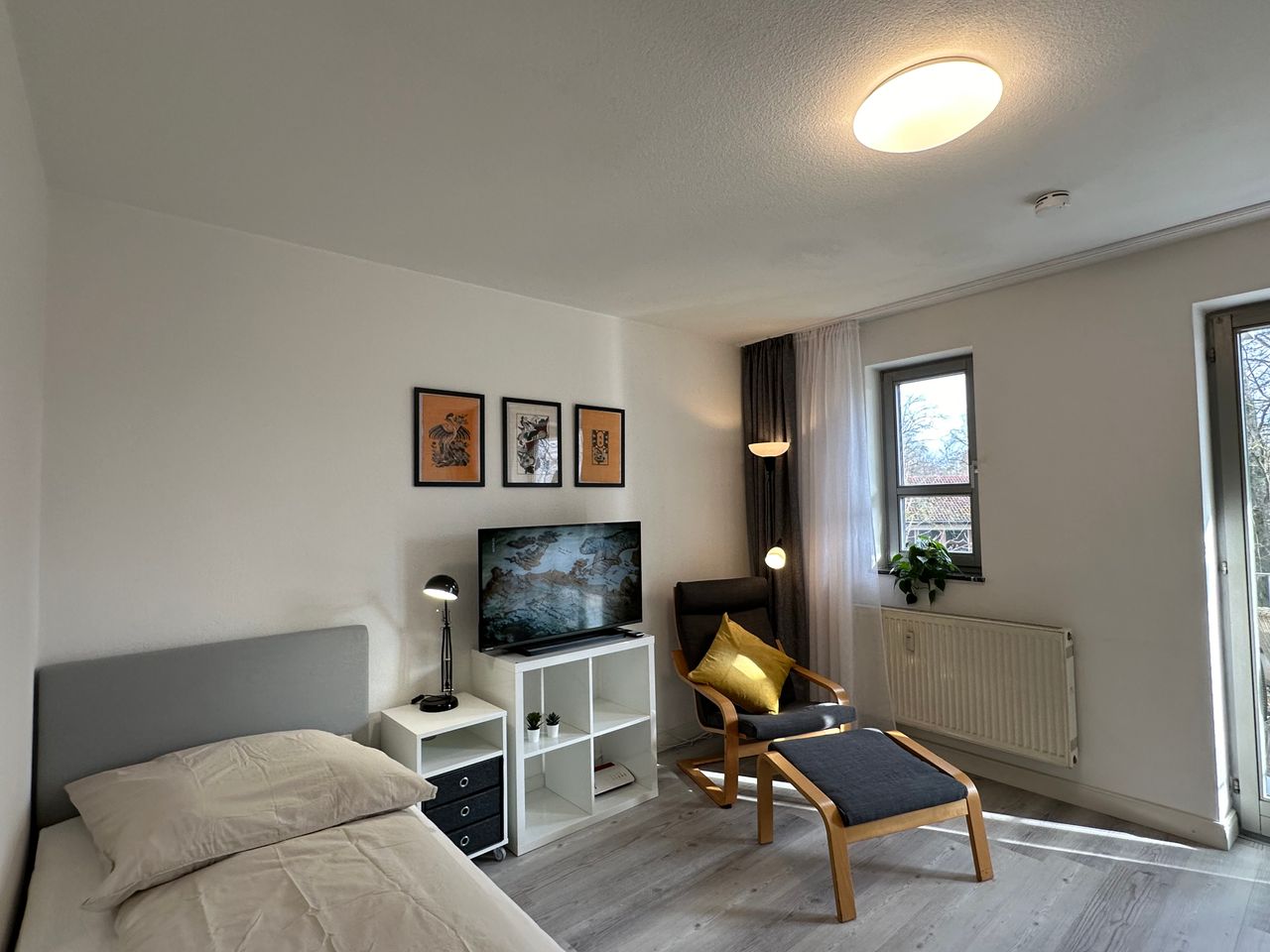 Your home away from home! This fully-furnished, freshly renovated, modern and stylish apartment is available for rent in Augsburg Univiertel. This quiet apartment with a relaxing south-facing balcony also comes with its own outdoor parking space and is also conveniently close to public transportation for easy access to Augsburg center as well as Munich and environs. The apartment is fully equipped with fast internet, a workspace, as well as a new 40in/102 cm smart TV, complete kitchen— fridge w...