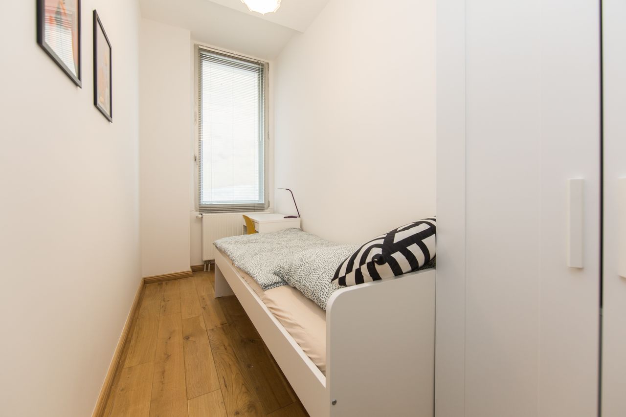 Modernly furnished room in a shared flat, including registration