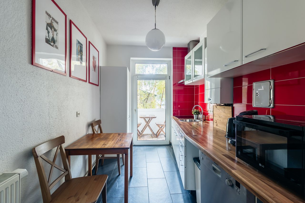 This charming 2-room flat offers a comfortable living ambience on approx. 55 m² in a location close to the city centre. The balcony is furnished with a table and two chairs and invites you to linger. The flat has a fully equipped kitchen, a modern bathroom and free WiFi. Shops for daily needs and public transport are within walking distance.