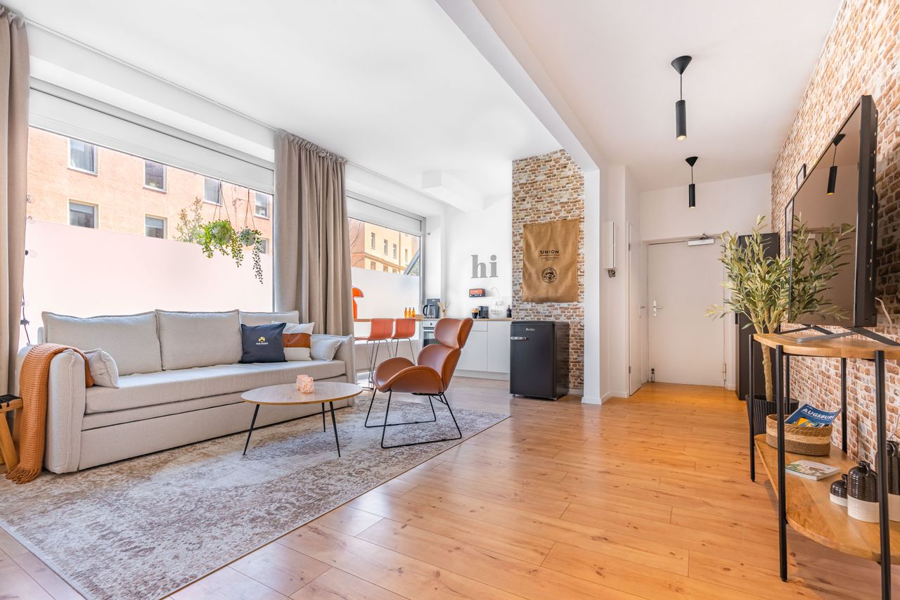 This stylish city apartment was renovated and furnished with a lot of passion by me and friends in 2024 and awaits you with great furnishings, a large balcony and can accommodate 5 guests. The perfect place to unwind and explore the city of Augsburg. You park directly in the courtyard and access the apartment directly via the key safe via the stairs. You can expect an approximately 90 square meter apartment with 1 bedroom, bathroom, extra toilet, living (bedroom) and kitchenette. You can start...