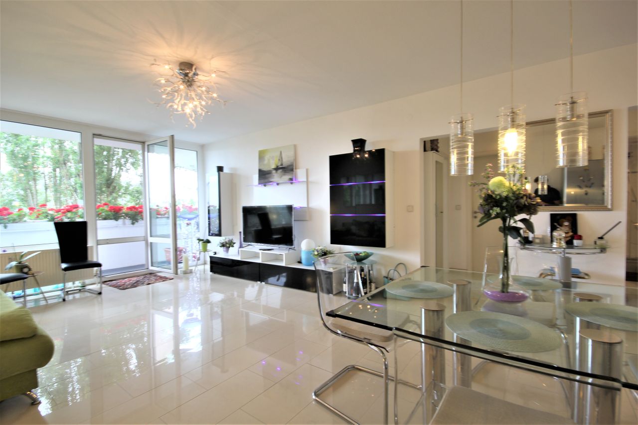 Spacious and bright apartment on the 5th floor of a high-rise building, furnished and equipped with everything you need, in a central location. The Offenbach Kaiserlei S-Bahn station can be reached on foot in 2 minutes, and there is also good transport links via the A661. Here you can expect a modern and open kitchen, which flows smoothly into the living / dining area. It has its own balcony attached to it. The bright bedroom also has access to the balcony and invites you to relax with its comf...
